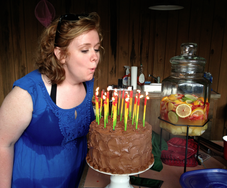 And as soon as the shower was over, we all moved outside to the pool to have a little early birthday party for Julie, who is turning 27 on Wednesday: