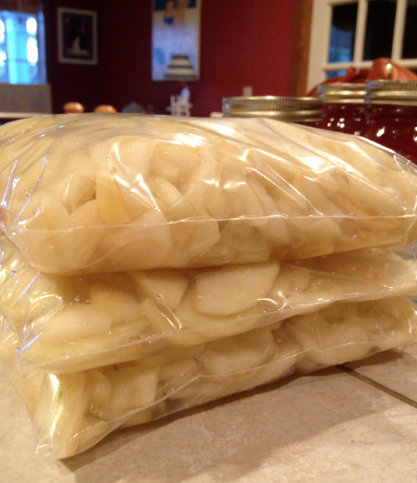 And for some of the pears, we sliced them and prepared them for freezing. I’ll use these to make pies and mama’s pear cake in a few weeks!