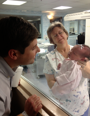 Lucy began to wail. She turned so red! And they held her up to the window so we could see her. When Jim came to the glass, she stopped and watched him. He talked to her, though she couldn’t hear him. Her daddy. I can’t believe I’m typing that.