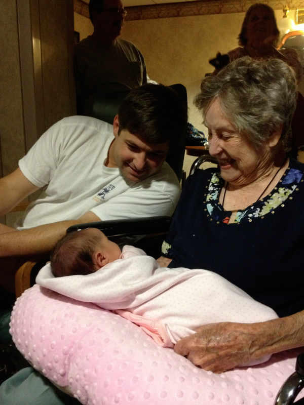 And before long, mine and Jim’s sweet Mammaw came by to meet her, too. She is 90 years old and this is her very first great grandchild. Isn’t that crazy?