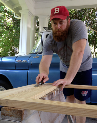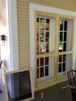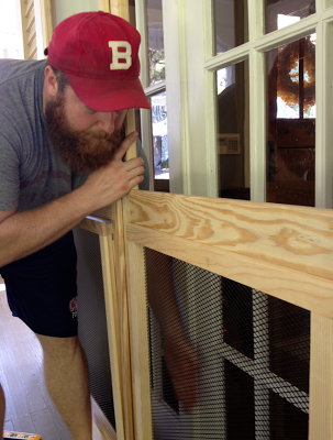 There’s been some major progress on the screen door front. After Ben got to this point: I helped stain them. But I’m saving any more pictures for the finish this weekend… When the low is supposed to dip down into the low 60s! Sweet relief!