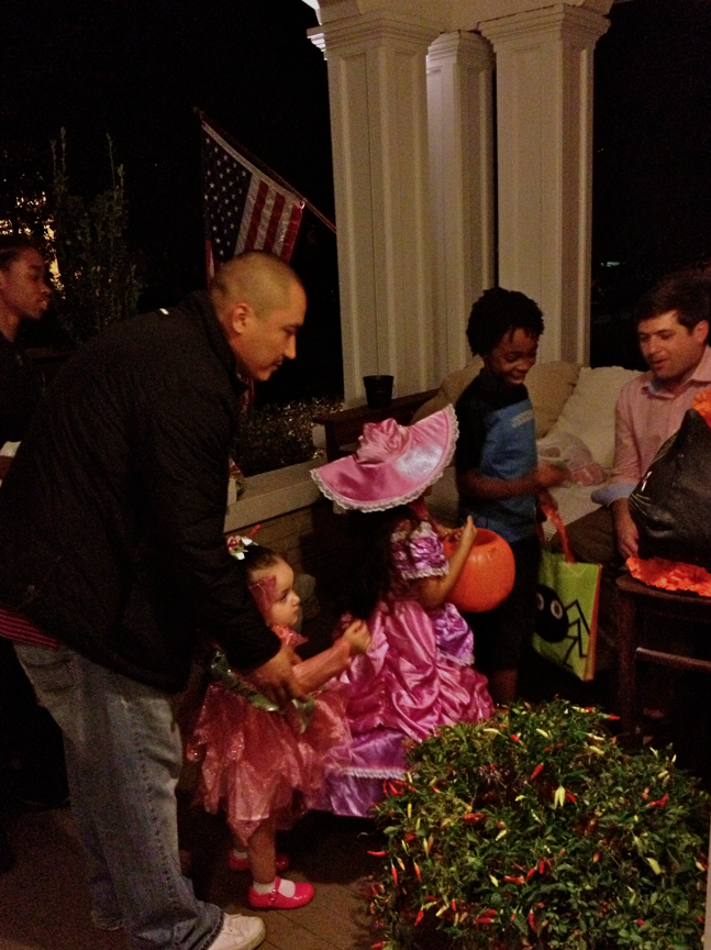 Jim stuck with Ben’s Halloween tradition of convincing small, innocent children that the huge cat head we put candy in would bite them if they weren’t careful and quick to pull the candy out.