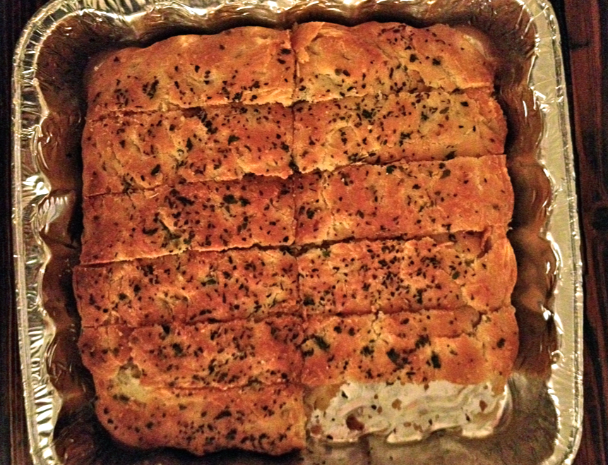 Behold, Pasta Roberto, garlic green beans, and focaccia bread by our friends Dawn and Lily’s delicious new bread baking venture, Trest Baking Co.: