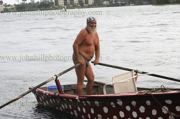 I went back into the tavern to ask the bartender about him. I said, “You probably won’t know what I’m talking about, but there used to be a man who would—” and he cut me off, “row up and down the river in a Speedo? That was Roger.”