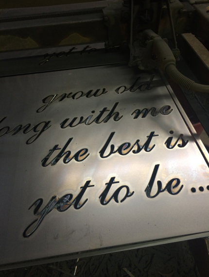 Ben was enthralled by his super duty CNC machine that was on full tilt cutting the millionth batch of ‘grow old along with me’ signs that folks saw on the season 2 premier of Fixer and CANNOT get enough of.