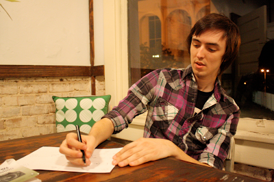 (Patrick writing down things for me to remember, me playing with the ISO settings. I have no idea what that means, honestly, though I think he mentioned something about pupils and ghosts.)
