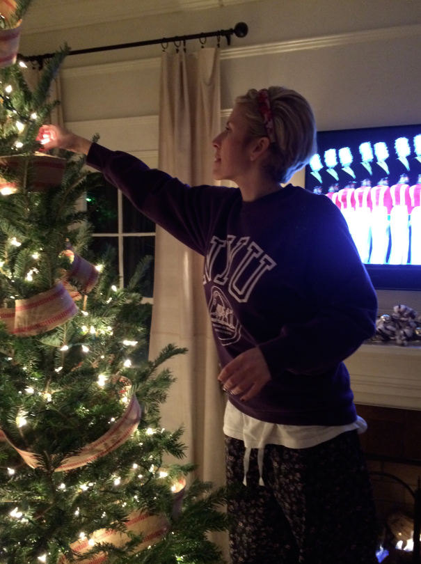 And since it’s been on our to-do list for 2 weeks and we’ve still not had time to go to the Christmas tree farm, tonight in an effort not to be the very last people on Earth to put up our tree, we went to Lowe’s and bought a fresh fir. It’s beautiful and will do the job, but it’s just so magical to drive out to the farm and choose and cut your own tree. Next year, we’ll get back on track!