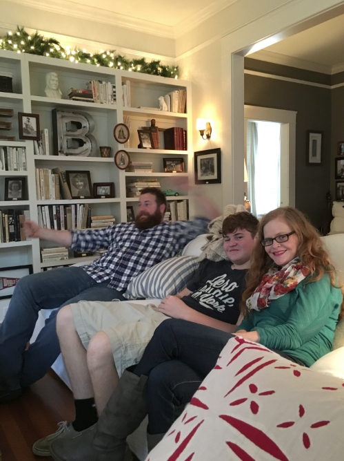 And soon Sam, Lyn, Jared and Ellie arrived bearing gifts of homemade Chex mix and Sam’s from-scratch Scottish shortbread that was TO DIE FOR. Seriously, I’ve never tasted anything quite like it—so buttery, sweet, soft, and with just a dash of cayenne pepper and salt. We hit the town for lunch at Lee’s, then walked around to do some shopping at Southern Antiques, Sweet Daddy’s Pop Shop and the Knight Butcher and ended up leaving them all with a bag full of yummy stuff to snack on. At Southern Antiques, I finally got to see the finished display cabinet Ben made for Oldfield Fine Goods totally from scrap reclaimed wood. I’m so proud of my main squeeze!