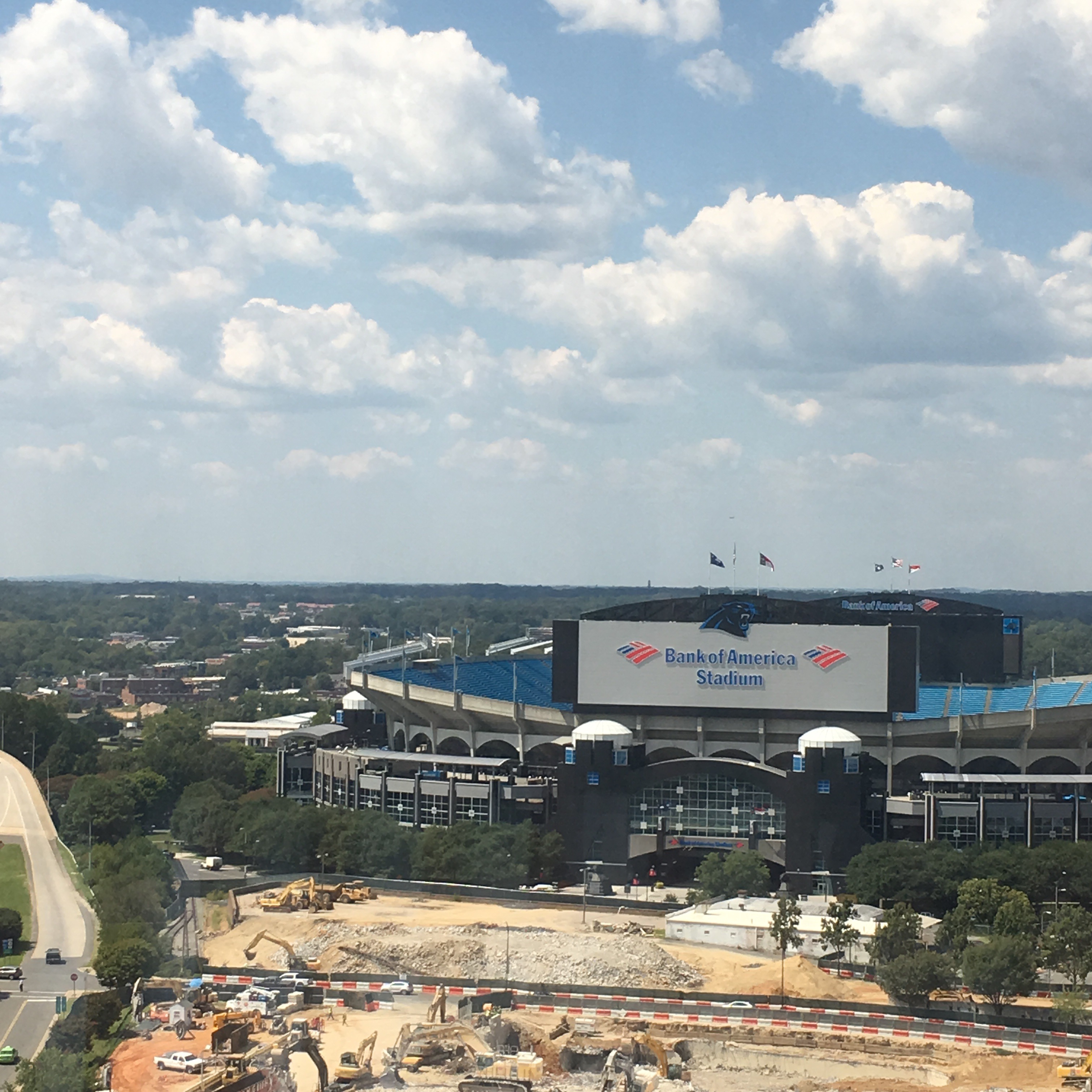Our hotel has a great view of the Bank of America stadium and it gives me chills to think that we have the responsibility and honor to represent them in this small way tomorrow.