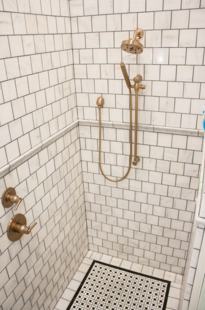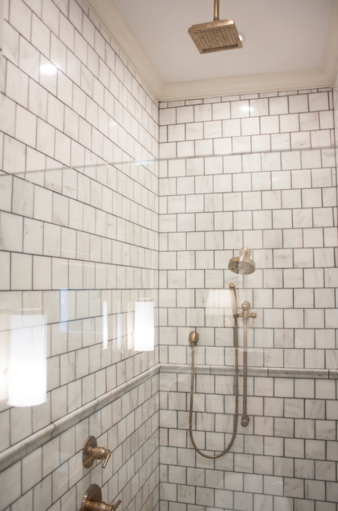 The master bathroom renovation has been a journey to say the least. Demo began on June 28 and the bathroom interior was complete yesterday, October 9, when the shower glass was installed, though that hasn’t stopped us from loving using it since the day the plumbing fixtures went in a couple weeks ago. We’ve wanted a separate tub and walk-in shower for so long, I guess since Ben destroyed his ankle way back in 2010 when he realized how tricky it is getting in a tub when you’re his size and injured. It’s going to be something we’re glad we did for many years to come, and even though it meant adding a gable to the house to pop out 5 extra feet for the bathtub of my dreams, it was worth the wait. And outrageous bill.