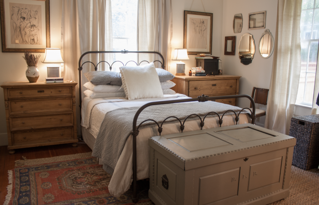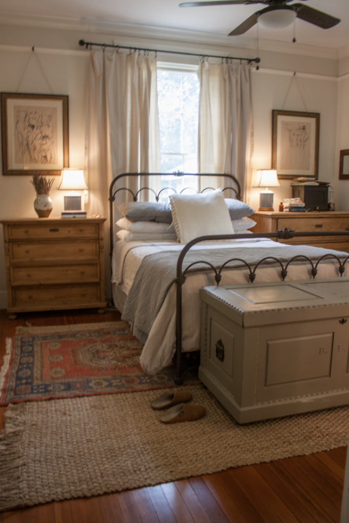 We decided if we’re going to do this massive overhaul on the bathroom, our bedroom deserves a grown-up makeover too. We’re not in our 20s anymore, and it’s time to invest in nice rugs, lamps and we professionally framed some of my favorite old figure sketches from college and hung them from the picture rail.