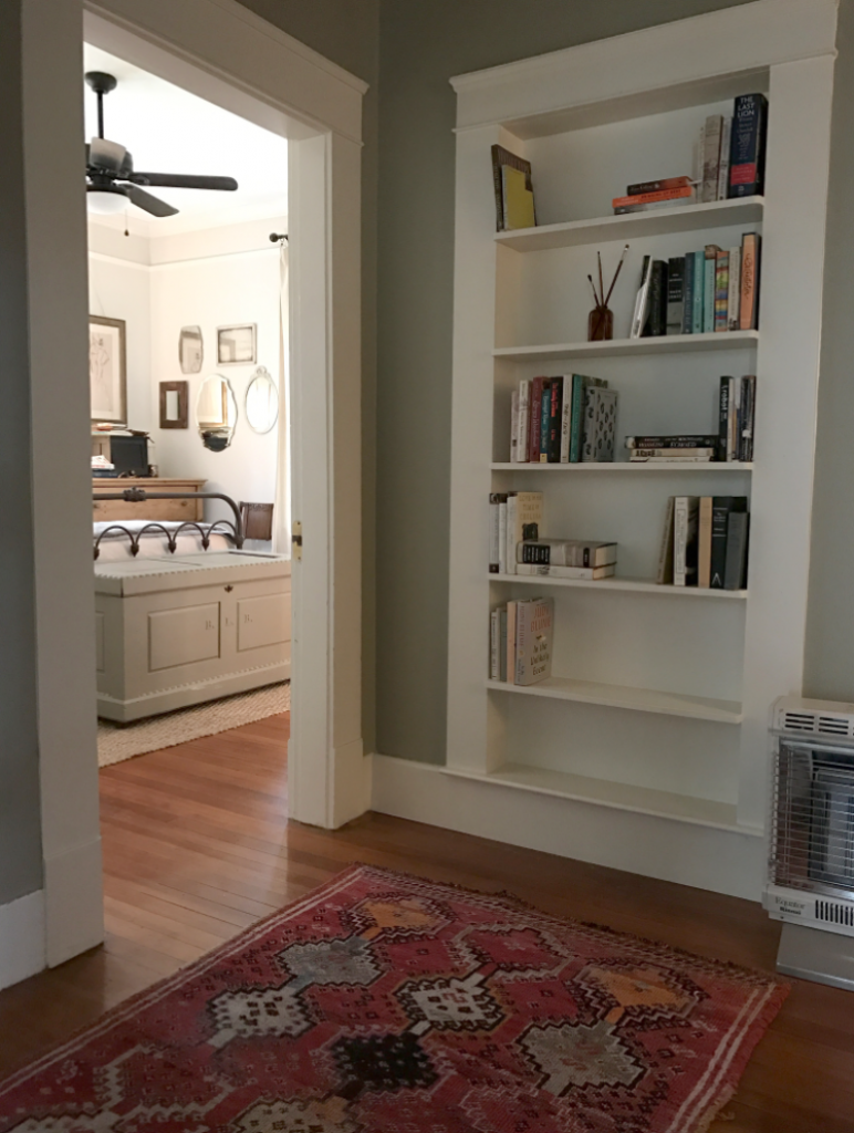 Before, you would enter our master bathroom through the hallway, which we always hated—especially during big family gatherings at our house. Now, it’s another built-in for our massive collection of books, and while it’s a little sparse yet, it won’t take us long to fill this one up too. It makes me smile every time I walk around the corner and see it.