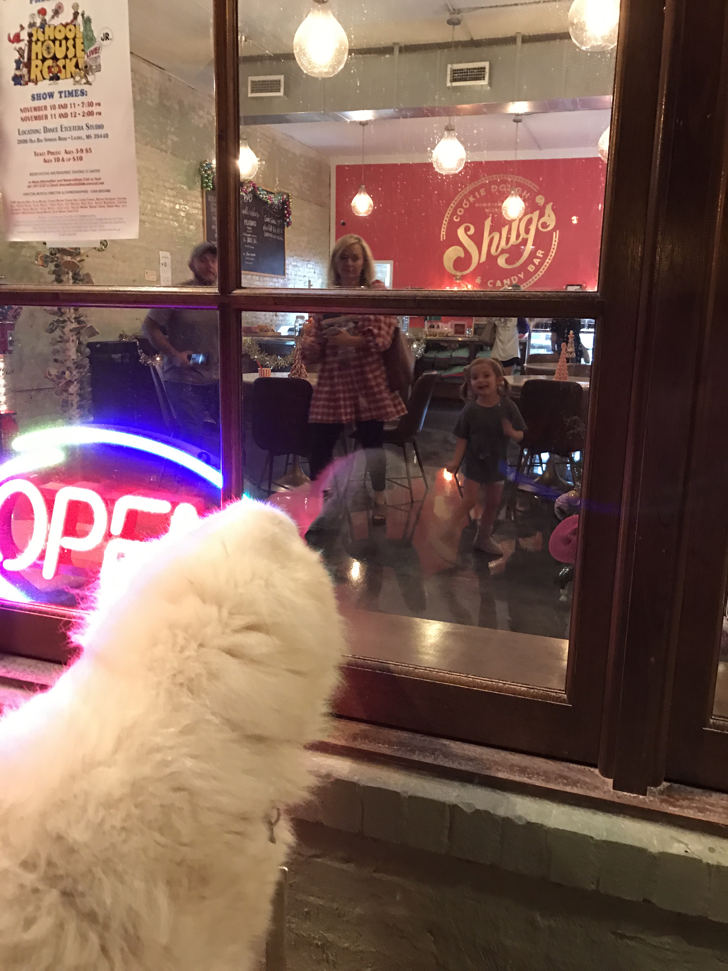 I talked to him in hushed tones about everything that’s opened recently. I swear he listened to every word intently, being careful not to pull me, staying just a step ahead, waiting for the green lights at the crosswalks.