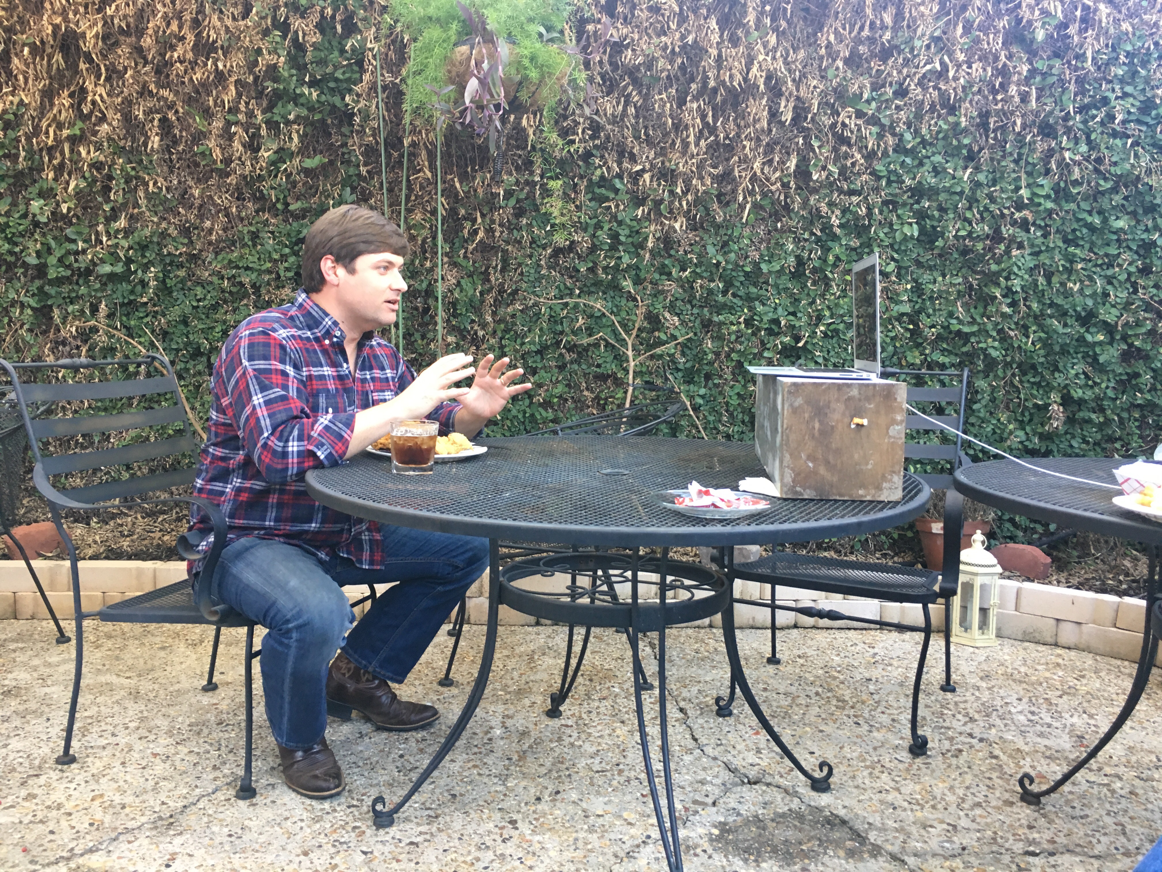 It was an unusual way to spend the afternoon–and I won’t give away too many details, except to say we sat in on my cousin Jim’s hysterical Skype meeting that was all about food. It lasted nearly 3 hours, while I played gaffer and camera girl, and it left me starving by 6 pm.