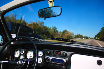 It was the perfect kind of Saturday with absolutely nothing on the agenda. When we woke up (VERY late this morning, might I add), Ben suggested we take the convertible for a long ride. He’s never seen Dunn’s Falls near Meridian, so we decided to take old highway 11 and see it. My car was made for driving at 50 miles per hour—which is just what kind of traffic highway 11 was made for too. The weather today felt like a warm bubble bath. We rode with the top down and the heat on (surprising, since Ben is usually so hot natured), and I loved feeling the nip in the air above my waist and the cozy warm draft around my legs and feet. We drove beneath a canopy of hardwoods and pines, and endless blue skies. We passed a resort, long forgotten where mama used to eat Sunday lunch as a child. The abandoned building reminded me of the movie Cars, and I felt a wave of happiness knowing we passed it by on the road less traveled in a car that rolled off the assembly line in that resort’s heyday. I hate the way modernization ruined so many special, beautiful places. Ben and I are somehow stuck living in a past that we never lived in the first place—and I like it that way.