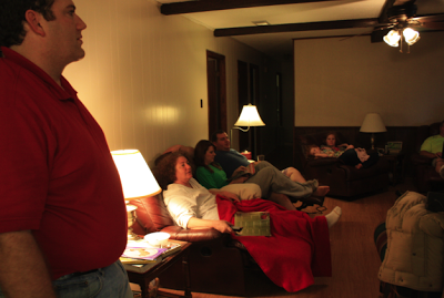 Normally I would tell you that the food was the best thing about today, but that’s not so. Better than the food, and better than the fact that we can officially celebrate Christmas coming up, was watching home movies. We watched the Rasberry family Christmases and Easter from 1985-88, and got SO tickled about what country bumpkins we sound like on film (6 year-old Jim squealing in delight: “It’s gawt a ZIPPEEERRRRR!” when he opened an otherwise unremarkable sweatshirt). Later tonight, we watched Ben’s home movies at his parents’ house and got SO tickled at Tom’s little 5 year-old butt in whitey-tighties and a very theatrical 9 year-old Ben doing the peanut butter & jelly song with hand motions.