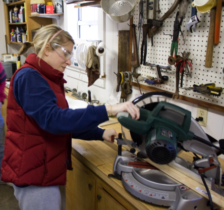 We gave daddy a miter saw for Christmas so he could get back into building frames and furniture, and mama’s Christmas present was a watercolor to hang in her newly renovated bathroom that I did a long time ago in figure drawing. We promised to use the miter saw to build a frame for the painting, and today we finally got around to it: