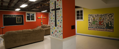Next up, this afternoon we pulled up the tape, touched up spots, rearranged the furniture and generally freshened up the youth room.