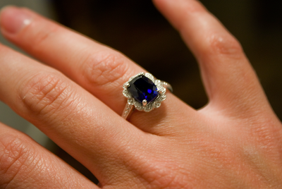 Today, Ben gave me this beautiful sapphire ring as an early birthday present and I’m completely in love. I’ve never cared for jewelry and only wear my wedding ring, but I do so love an antique-style ring. It’s his birthstone, sapphire, which I find terribly romantic.