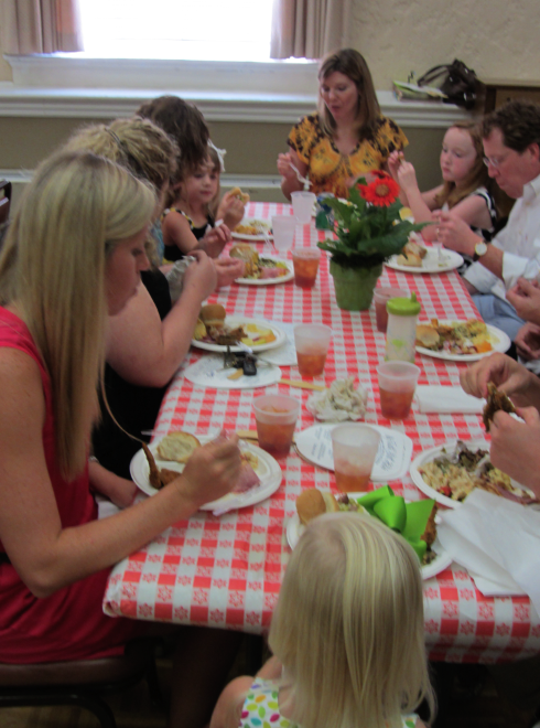 Have you ever been to a gospel sing? Ben thought it would be fun for our church to have a camp meeting Sunday morning in August since it’s so hot out and much easier to dress casually, and our choir director, Joey, went to town on the idea. Our usual late service is formal, with robes and acolytes and absolutely NO CLAPPING during the service.