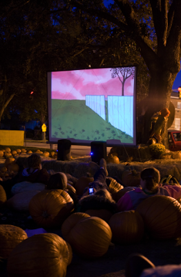 Nights like this make me fall in love with downtown all over again. The fact that temps were in the 40s made it feel like we were closer to New England than the Gulf of Mexico and all the little kids were hunkered down in coats and blankets, turning pumpkins into pillows for the duration of the movie. There were lots of parents and youth hanging around for the spectacle, enjoying the hot chocolate on tap.