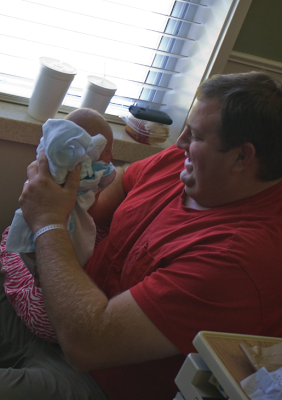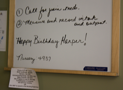 Today at 2:54 pm, Tom and Allison welcomed Harper into the world! She was 6 lb. 14 oz. and 20 inches long. Allison looked fabulous and was in the greatest mood when we got there—this is something I need to keep in mind to build my courage for the someday possibility of childbirth. I hope I can be half the woman Allison was—with her mascara in place and a smile on her face. What a gal!