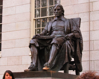 This is the John Harvard statue that folks love to rub for good luck (check out that shiny brass toe), but we happen to know that the fraternity boys tee tee on it every year to get a laugh at the tourists.