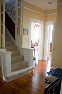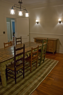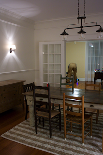 We made so much progress on the house today! We now have 3 rooms completely finished with paint, and we moved in what little furniture we have for the dining room. It’s looking barren right now without any art on the walls or “stuff” on the buffet, but that just takes time and we’re in no rush. Here’s a peek at some before and after!