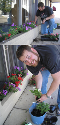When we woke up this morning, before my feet hit the floor I was dead set on going to a nursery and picking out some pretty flowers for our first floor window boxes. We’re having an open house during a downtown tour in April and we’re trying to fix up things we’ve been putting off for a while. We headed to Lowe’s and decided on petunias, phlox and snapdragons in the colors of our building’s palette (purple and red) and for $46 I couldn’t be happier with the results!
