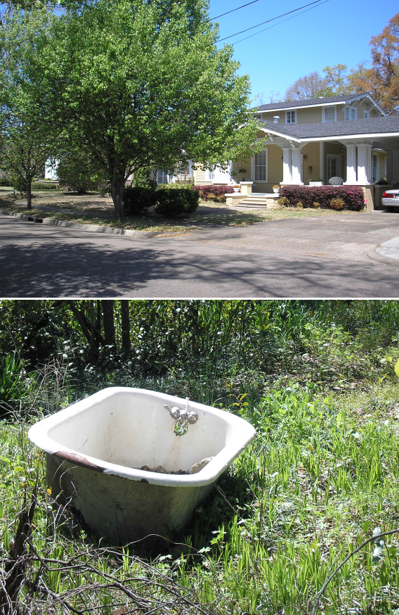 On 7th Street is the beautiful yellow bungalow where one of the sweet ladies from our church lives, and an old cast iron bathtub that’s been forgotten in the woods behind the Rogers-Green House. It wouldn’t need much work to make a fine bubble bath tub: