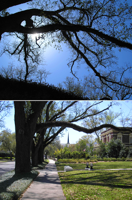 Finally, we’re almost back home in downtown as we pass the museum again and walk beneath the outstretched arms of these monstrous live oaks: