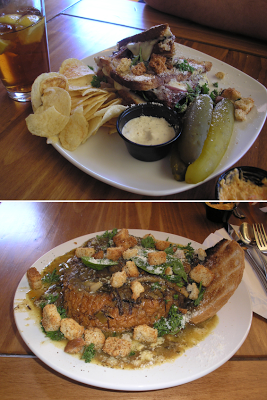 By the end of our walk it was 1 pm and we were starving, so we dropped in at Lee’s Coffee & Tea for our favorite downtown meal — beef brisket sandwich for Ben and the greatest French onion soup on earth for me: