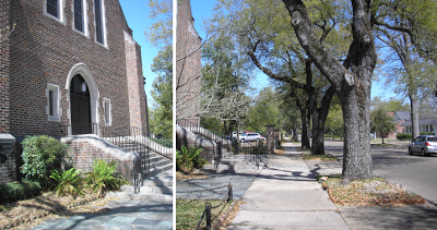First, we head out past our church on the walk, and go north on 5th Avenue: