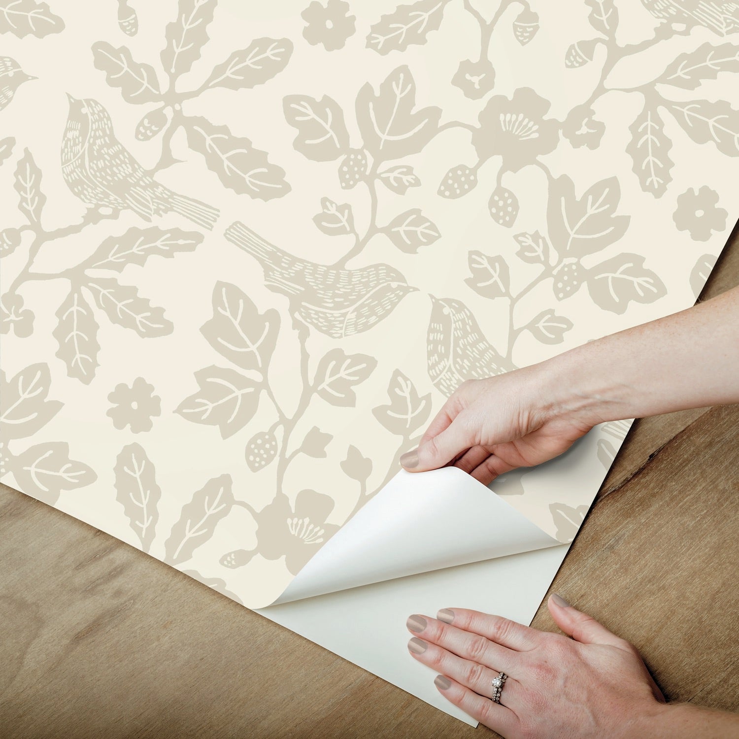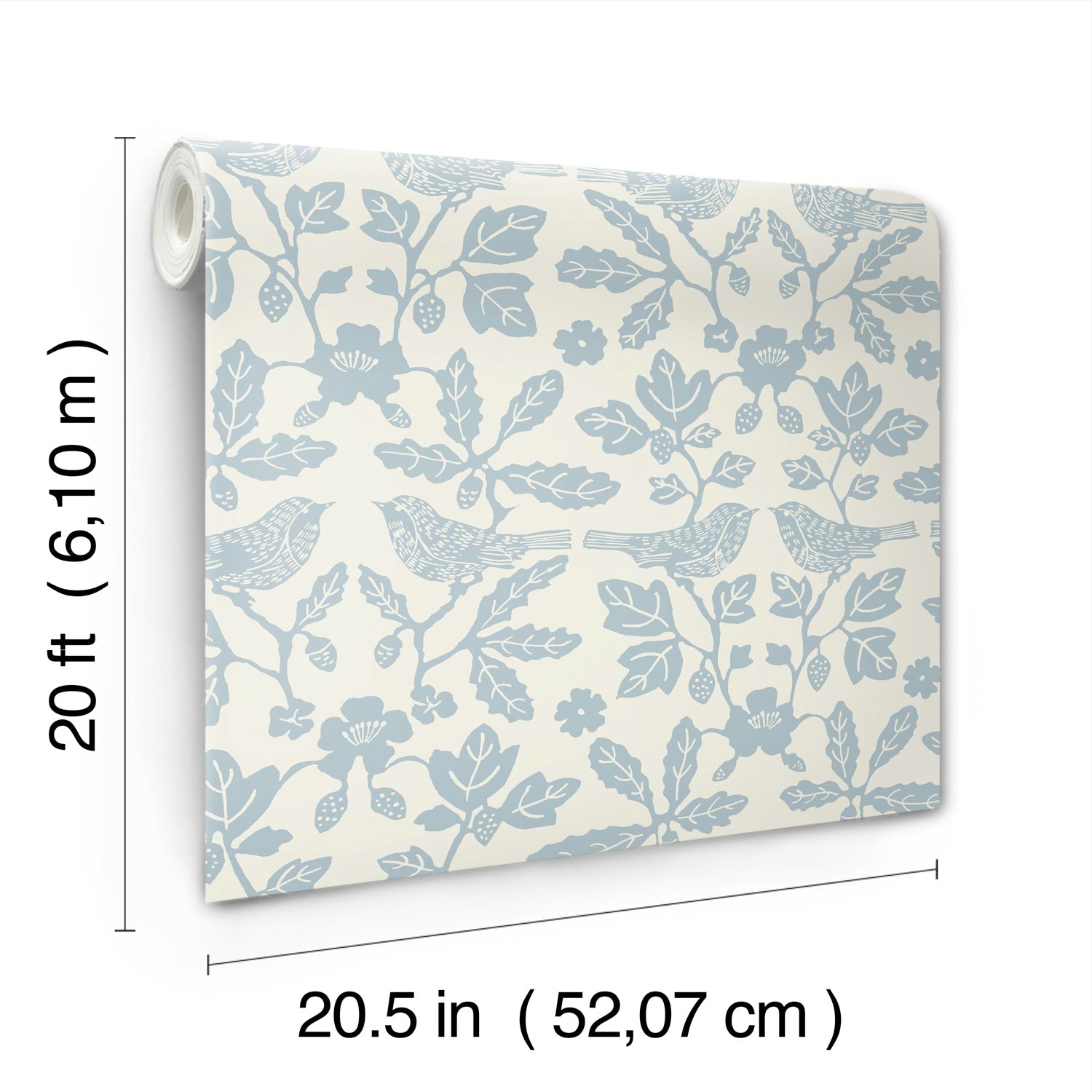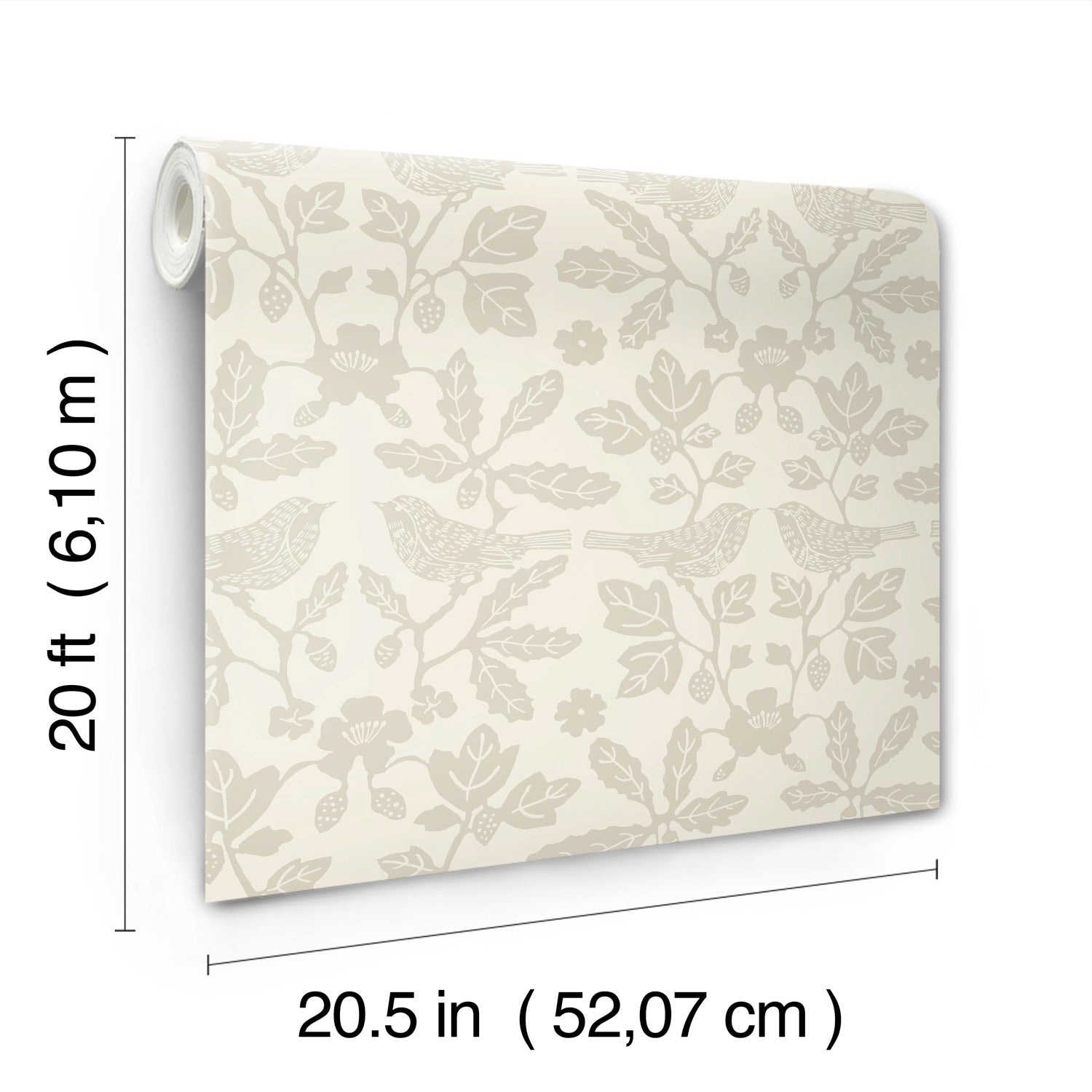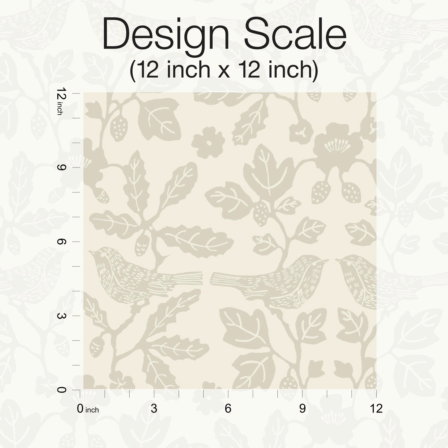 Songbirds-in-silhouette perch among flowering stems and leaves in the heirloom-inspired pattern Sparrow & Oak.