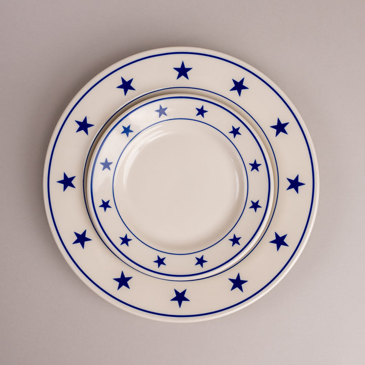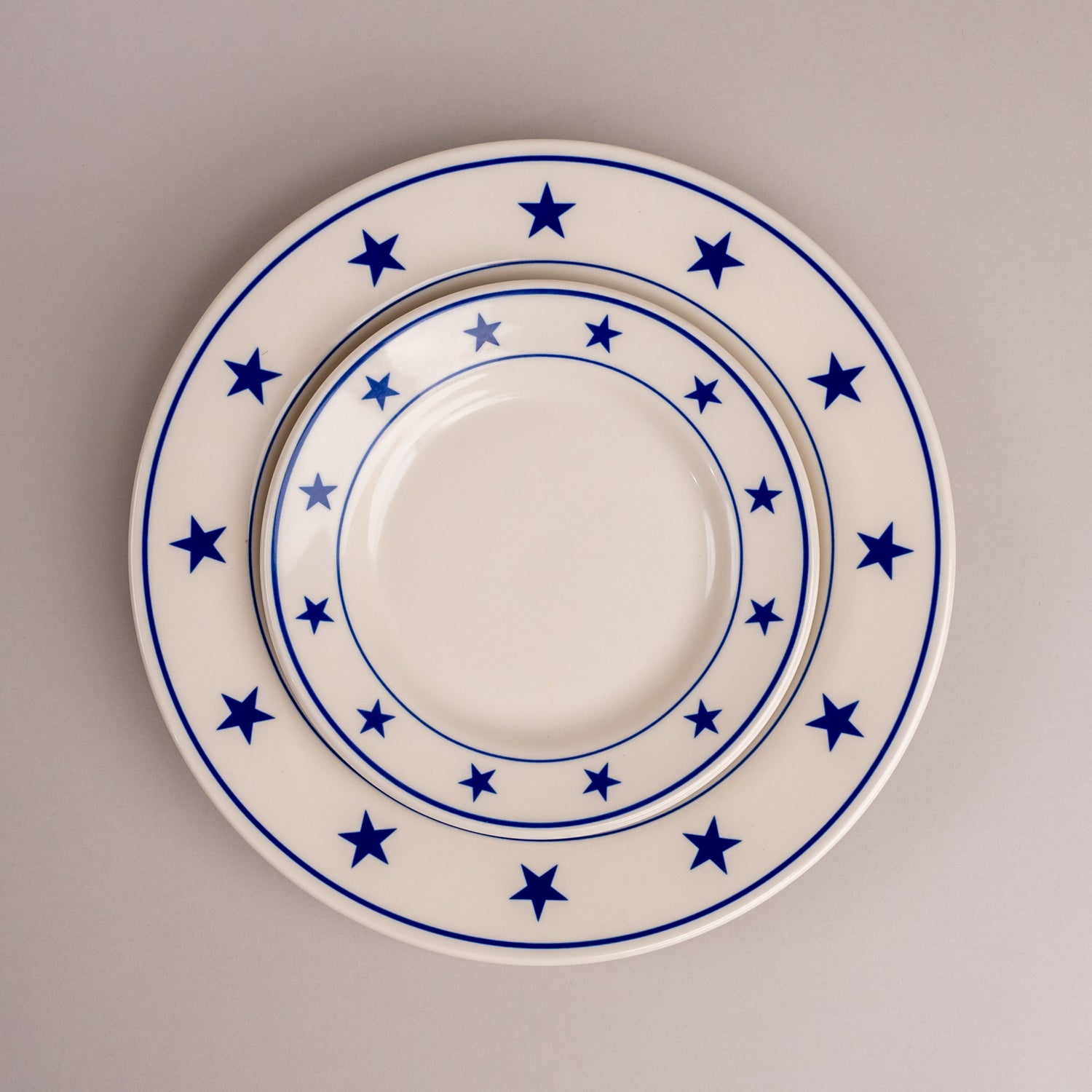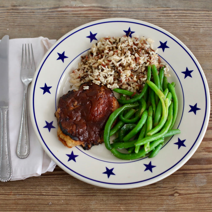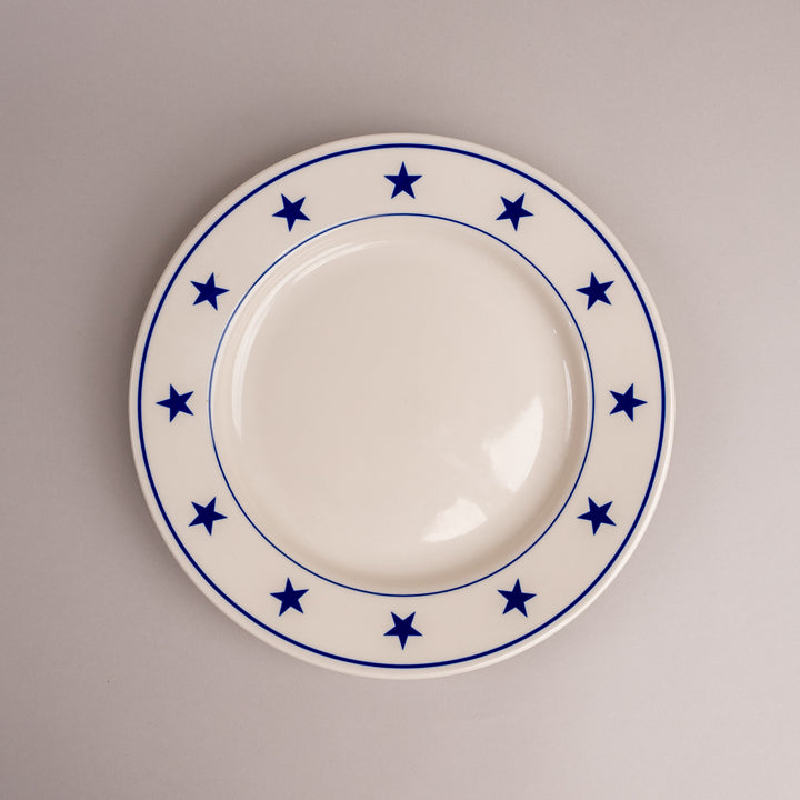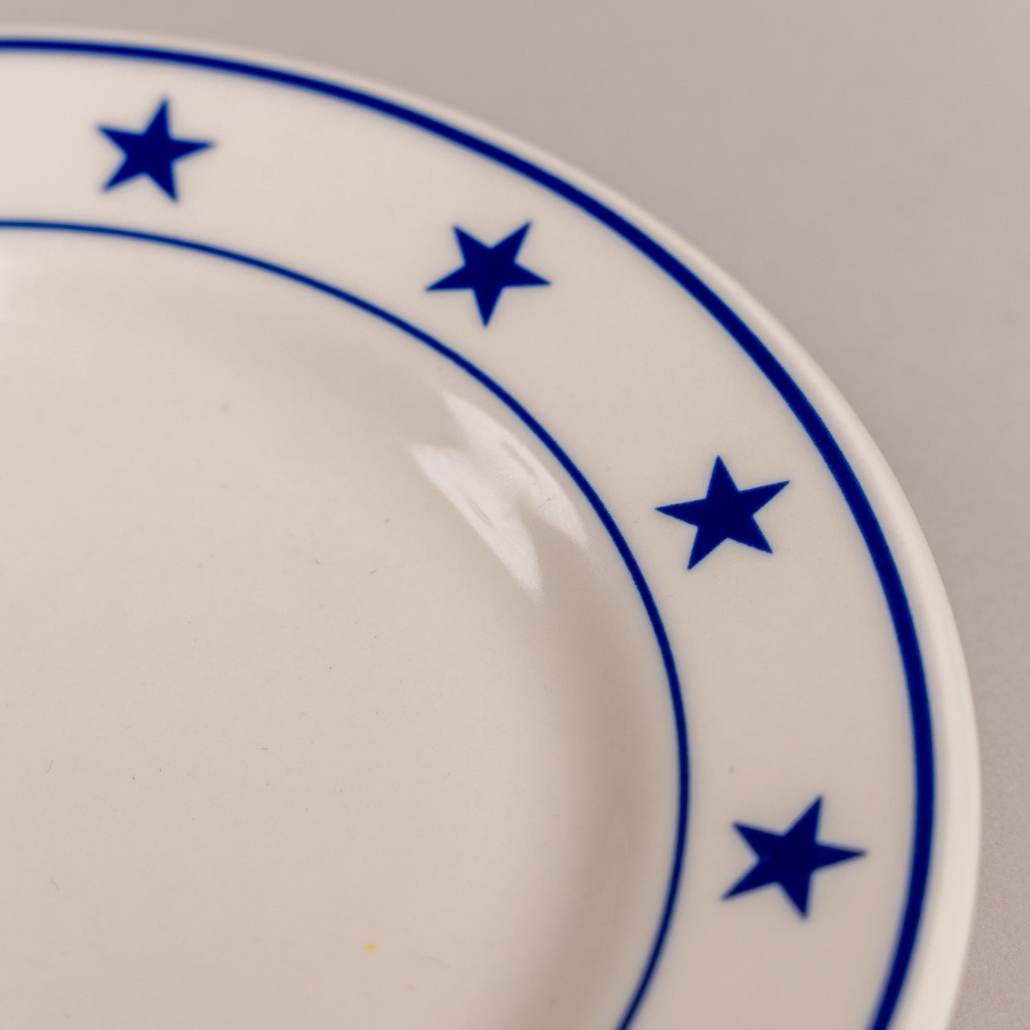 This Americana design is classic and timeless. The design is truly versatile and the perfect addition to any tabletop for years to come. Its durable ivory finish and blue star design compliments a wide range of styles, especially our Marisol and Carolyn styles. Made in the U.S.A. by the same company that's been bringing these classic, quality pieces to diners and homes for over 150 years!