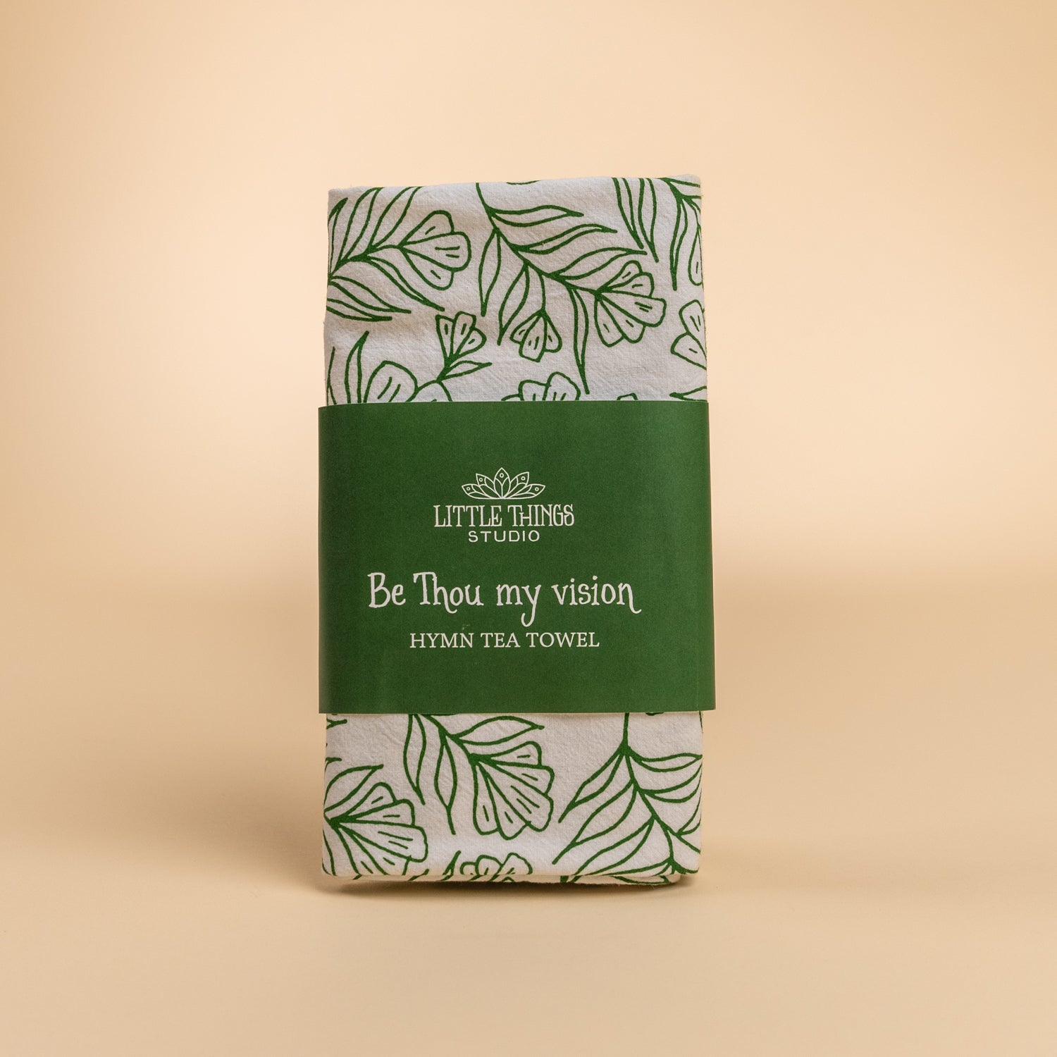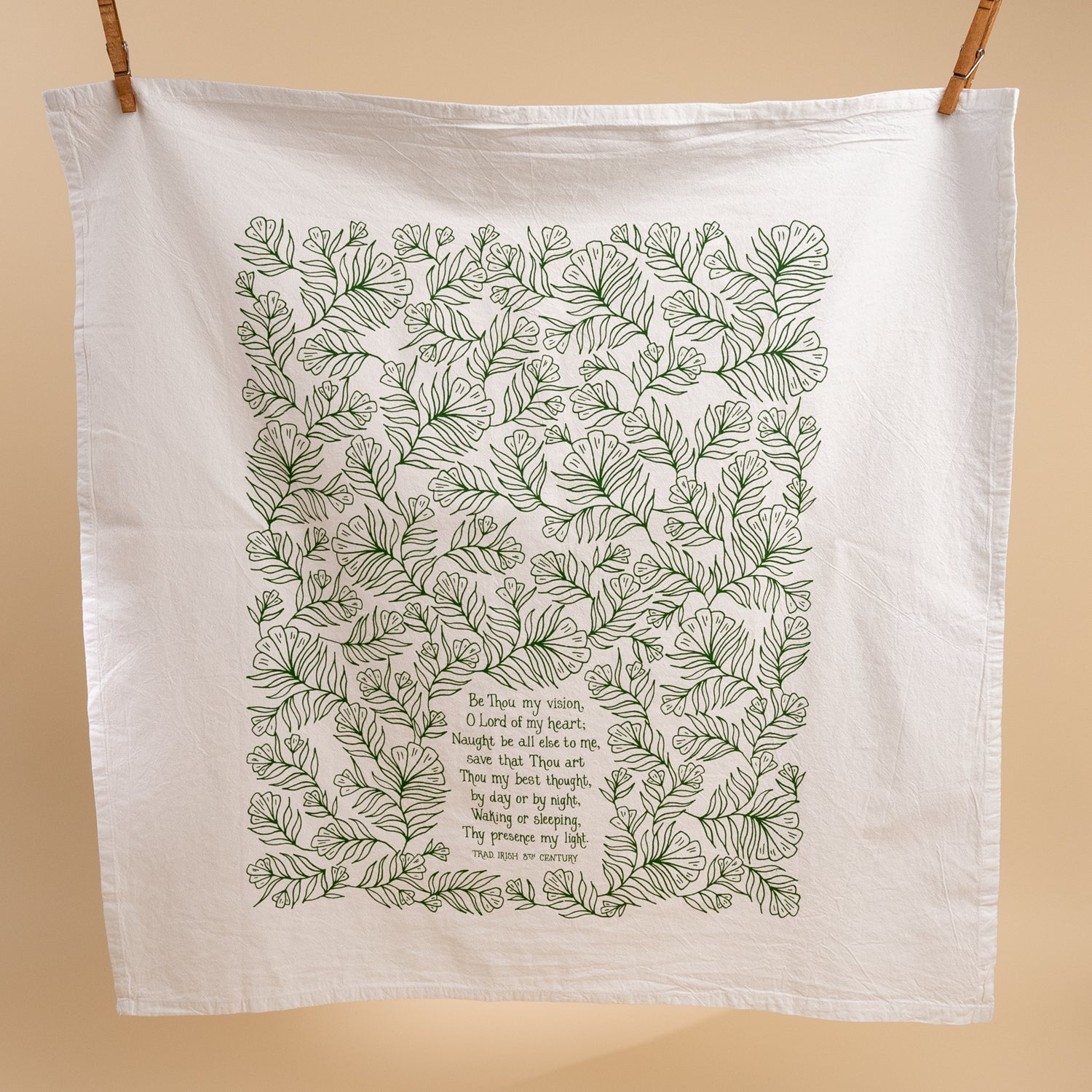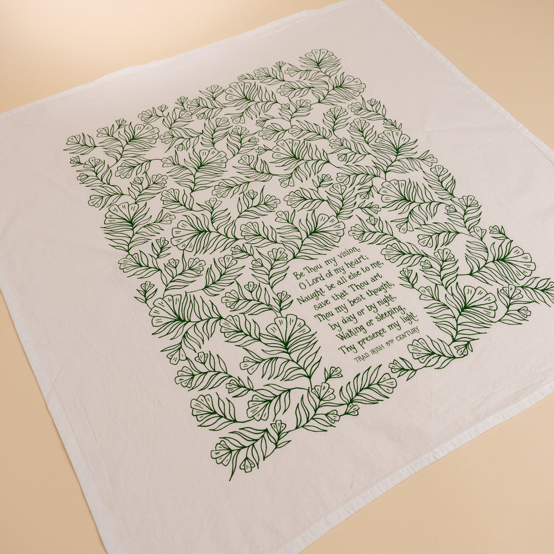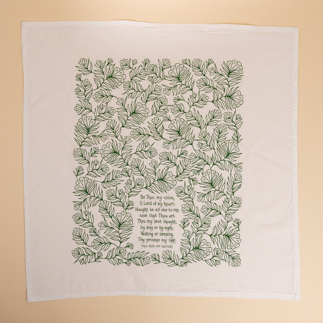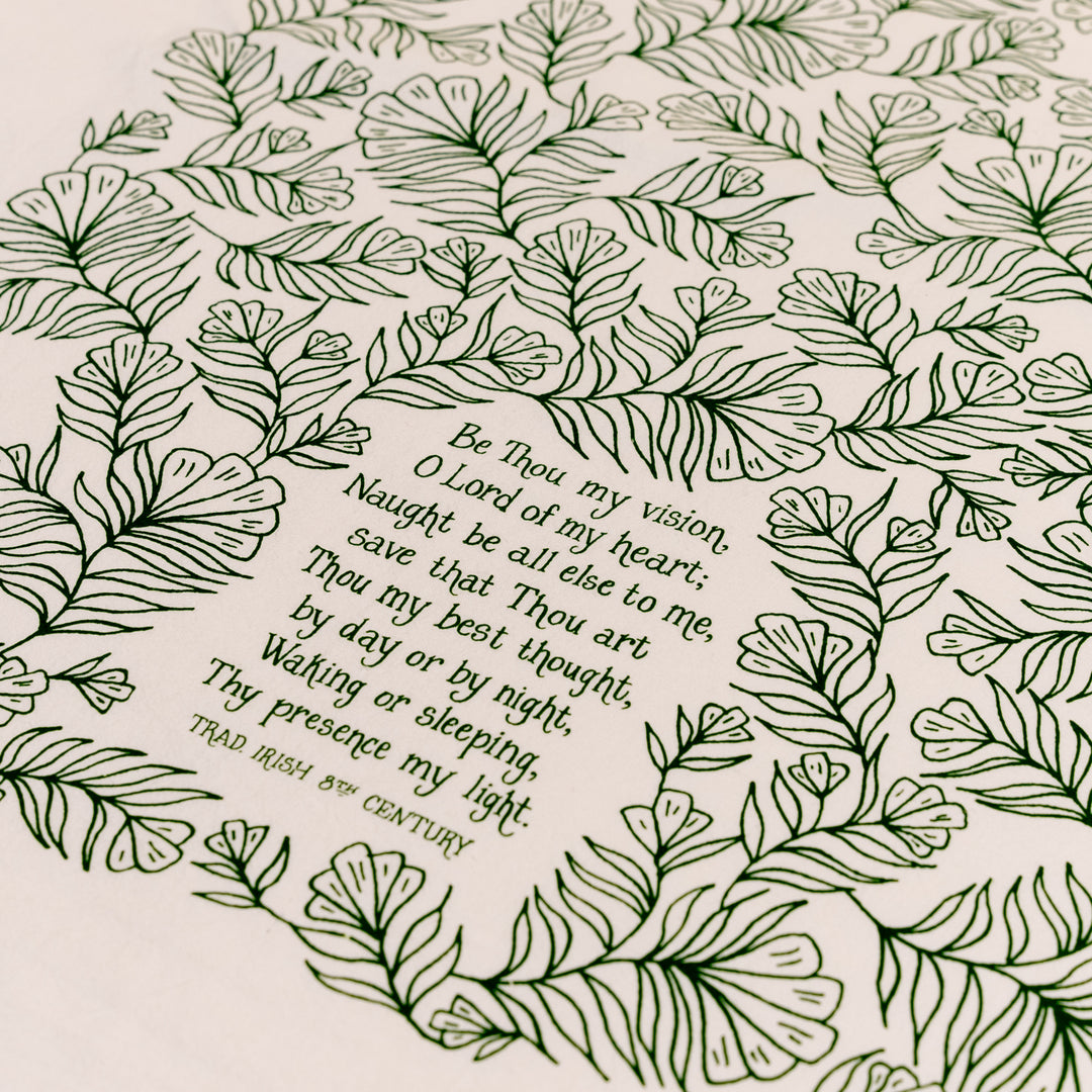 "Be Thou My Vision" with floral design printed in forest green
