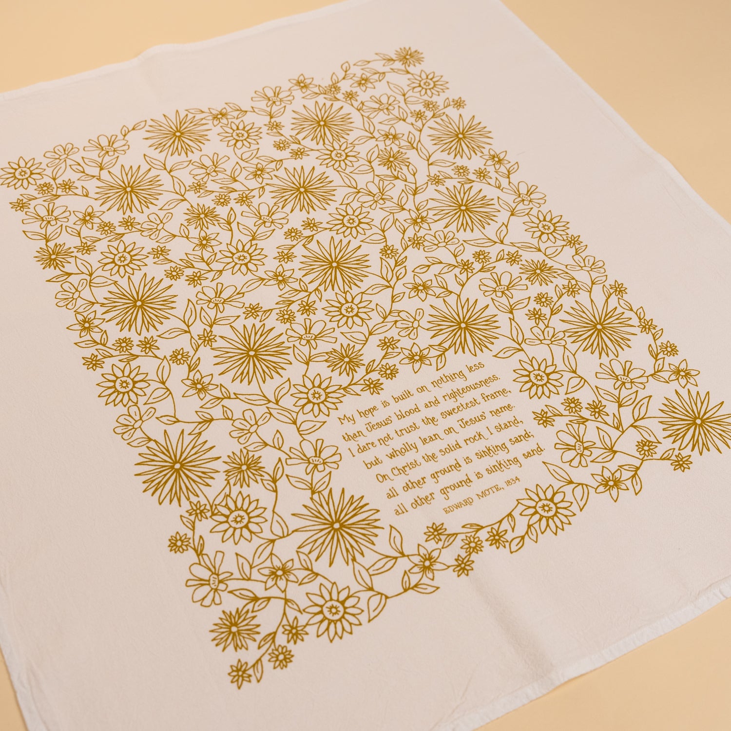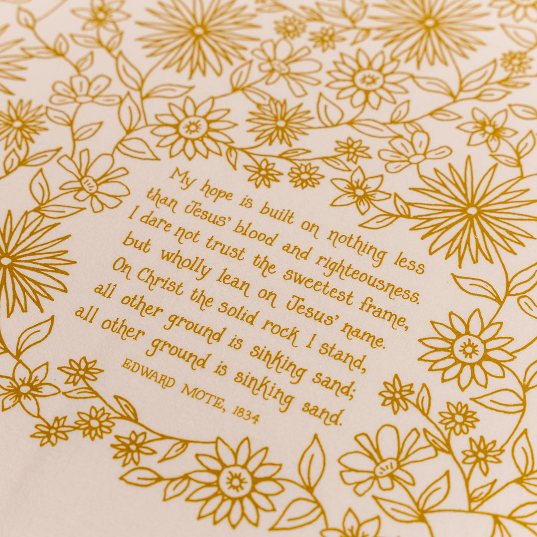"My Hope is Built" with floral design printed in gold