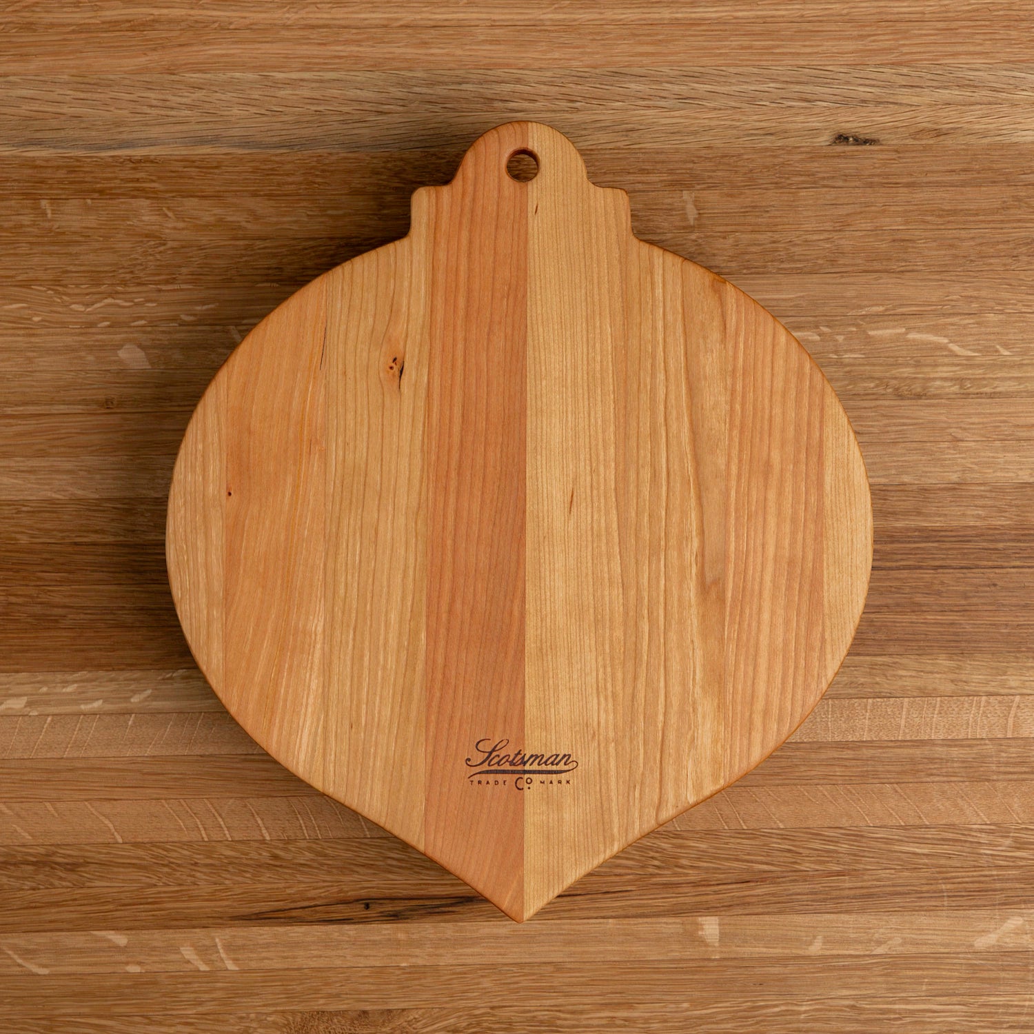 Impress your guest this holiday season with this Cherry Ornament Carving Board, perfect for any get together. Designed with a raised edge to keep everything in place, which means no more rogue grapes or crackers falling to the floor as you make your way from kitchen to table. The board can also be used as a serving tray or simply displayed by turning it over. Great multifunctional piece for any kitchen during the holidays.
