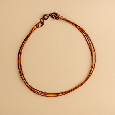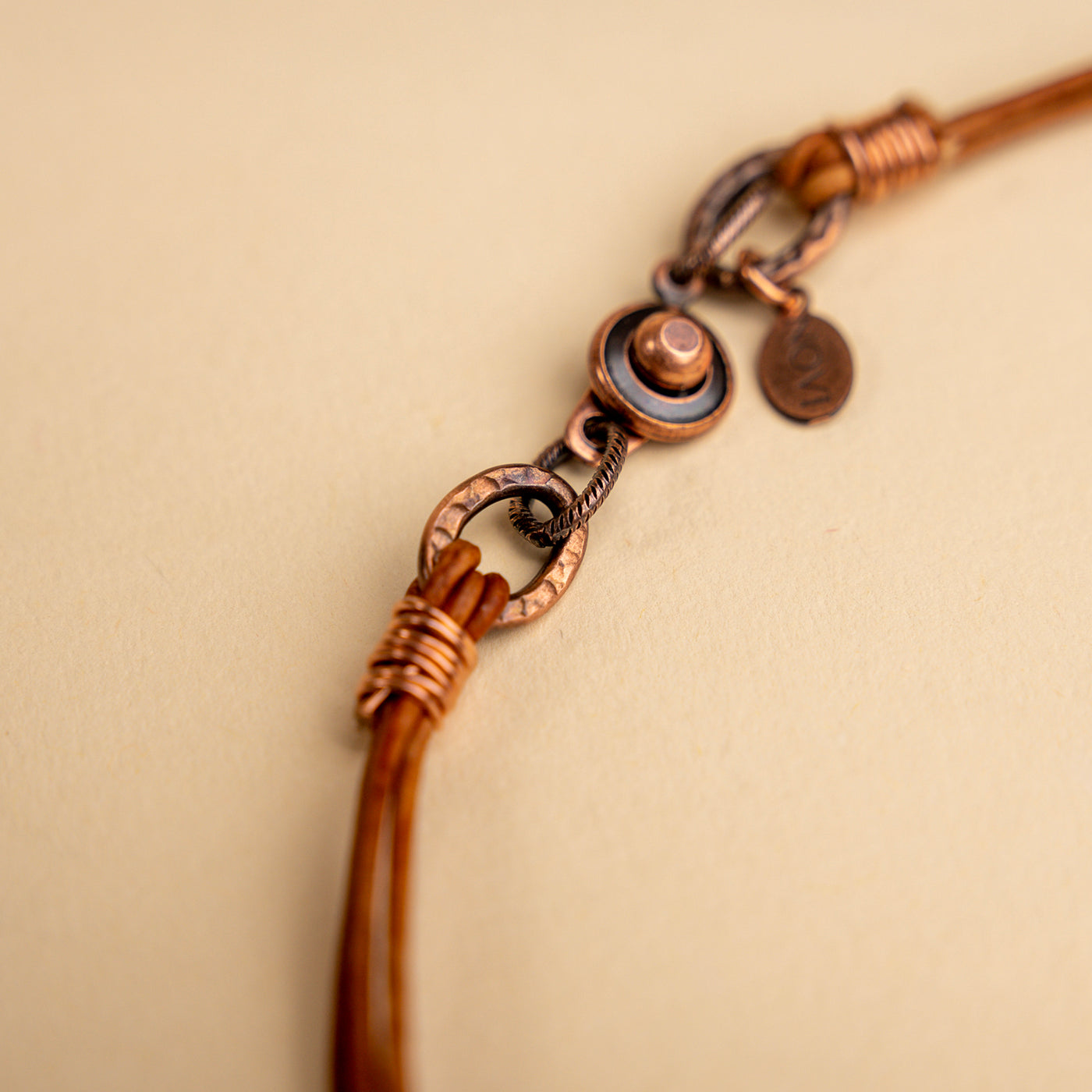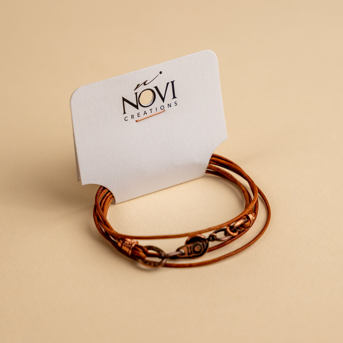 Beautifully colored natural brown leather with Novi's signature clasp allowing it to snap together with other NoVi bracelets for an original look. Wraps around the wrist twice, or can be worn as a choker. For a looser fit, add an extender!
