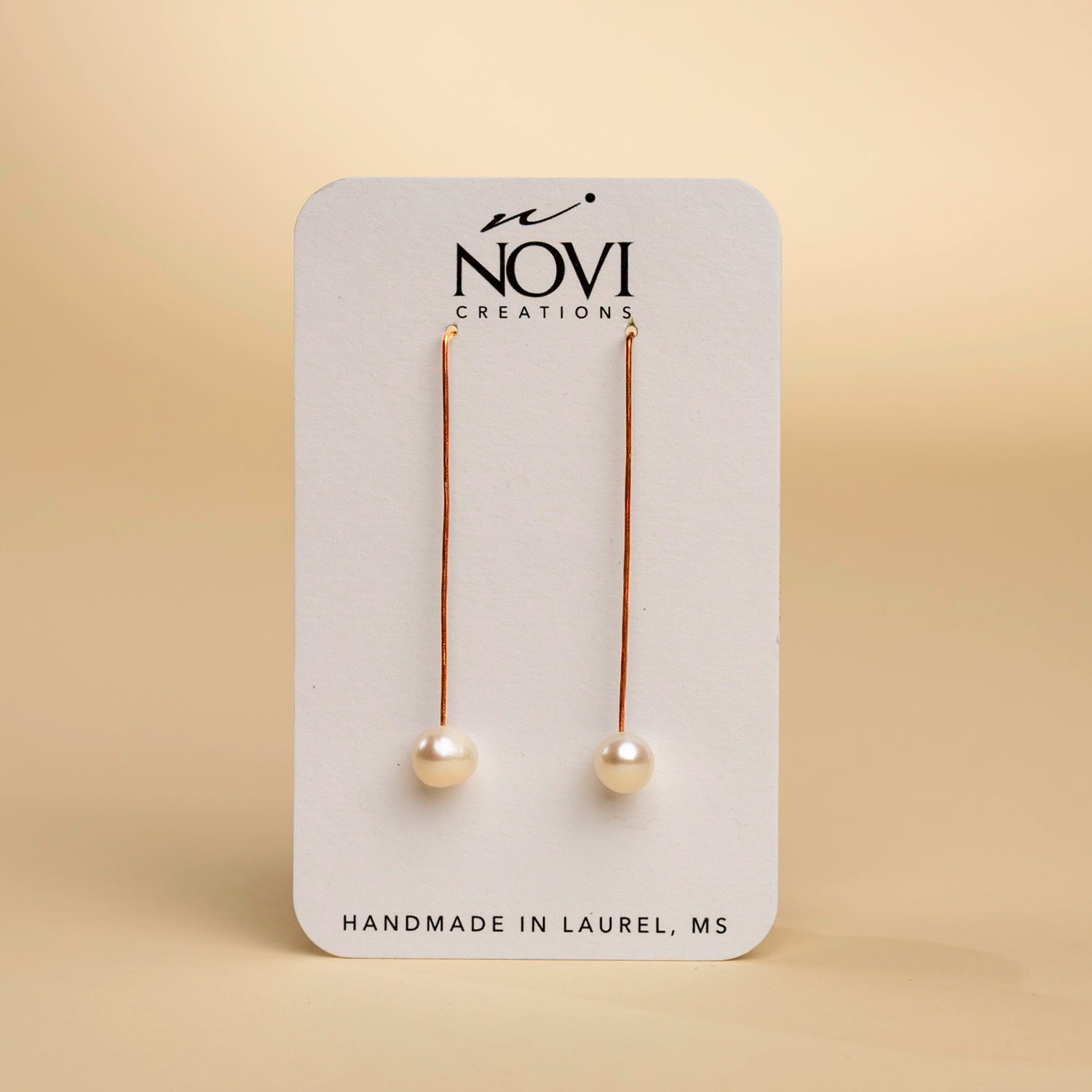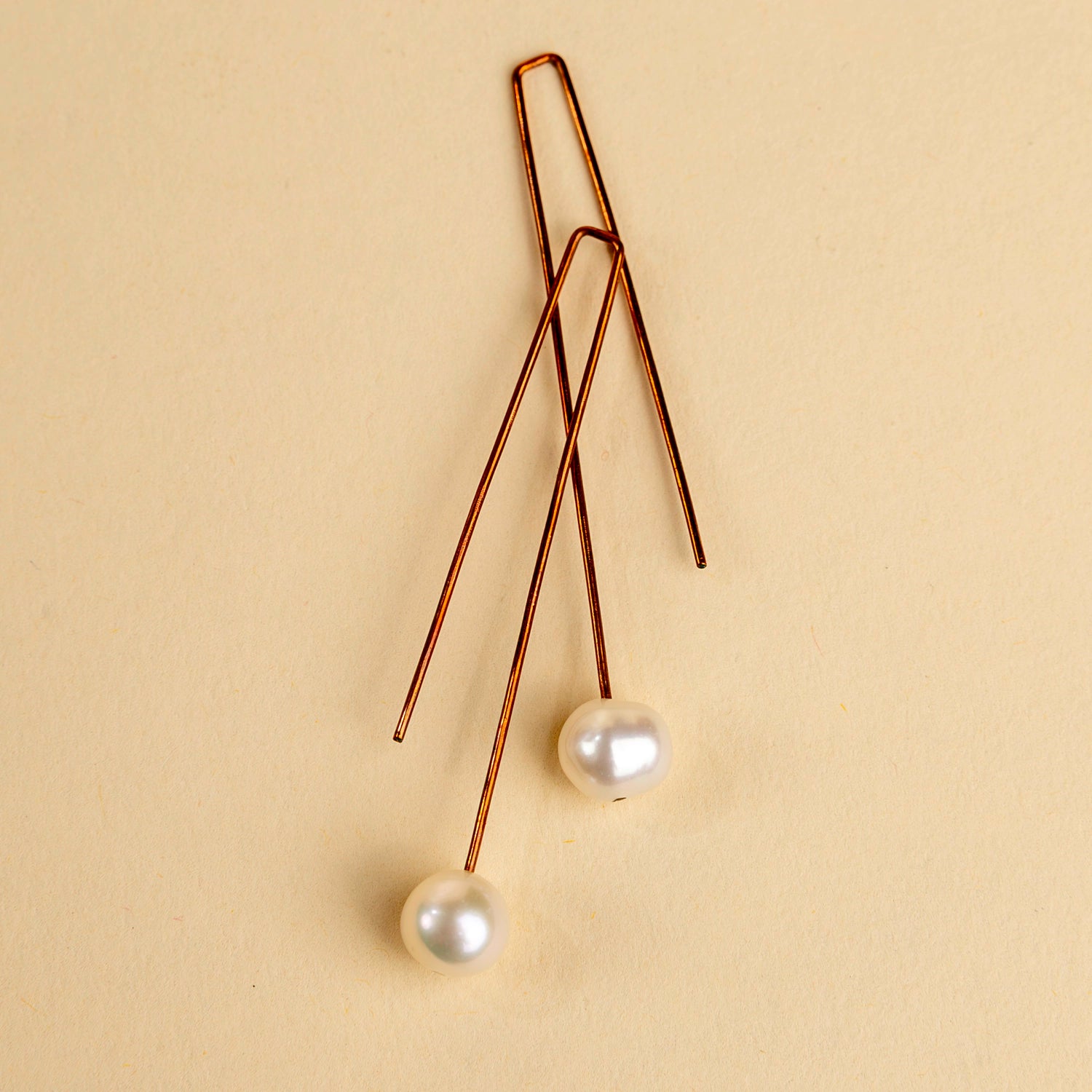 Freshwater pearl on hammered copper wire. 9mm Freshwater pearl dangles from a pure copper hand hammered wire threader style hook. Copper will gently oxidize over time and can be polished with a jewelry polishing cloth if desired. Handmade from start to finish.