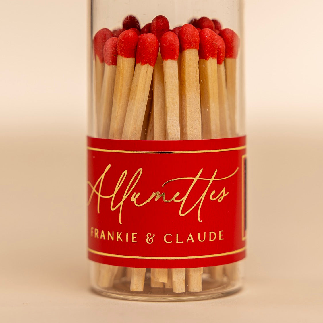 Introducing our mini short allumette match jar! Set it at your coffee table, mantle, or nightstand to add a bit of whimsy to any room. The crystal clear glass jar comes filled to the brim with playful splashes of color, courtesy of our rainbow-hued matches. The perfect playful-yet-posh partner for all your fire lighting fancies!