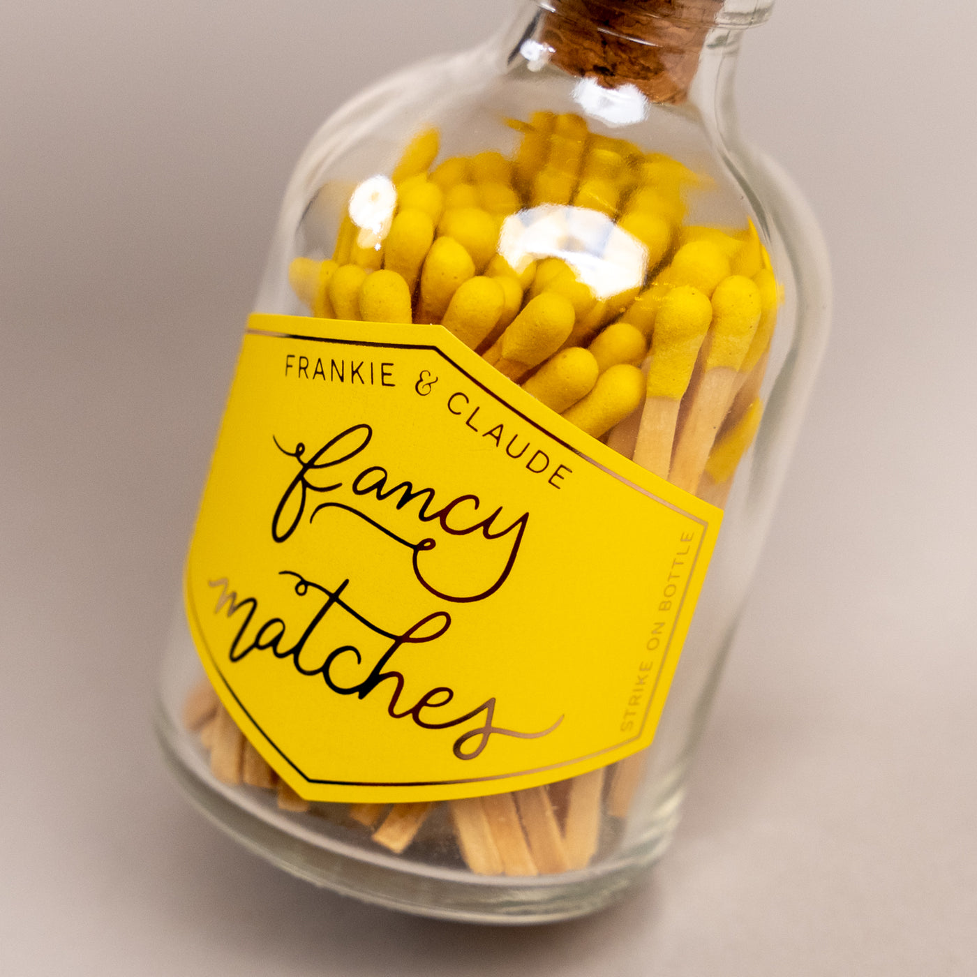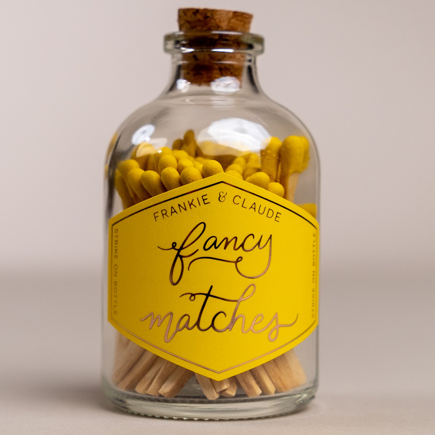 Adorn your mantle with custom colored matches tucked into a corked glass jar. A match-striker is affixed to the bottom. Matches are easy to remove; simply turn over the jar and give it a shake.