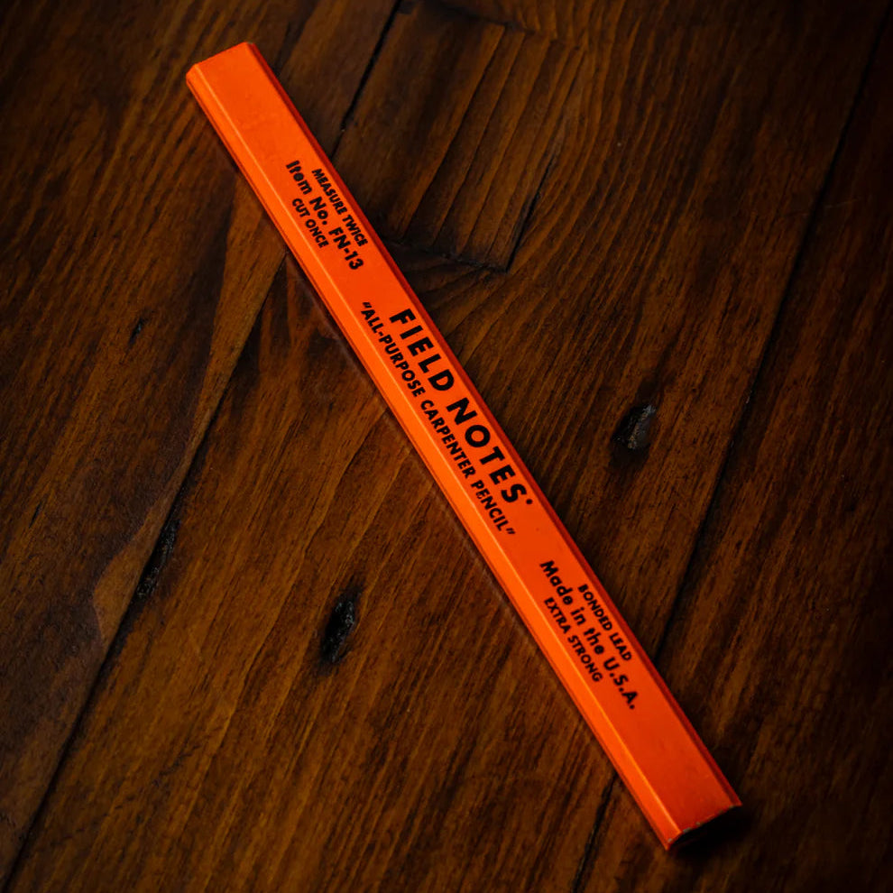The Field Notes 7" Carpenter Pencils fit nicely in your coverall pocket, or behind most standard human-size ears. They won’t roll away while you work. The bright fluorescent orange coating makes them easy to find in a cluttered workshop or toolbox. Stock up on these FSC-certified natural wood pencils for your next project. Measure twice, cut once!