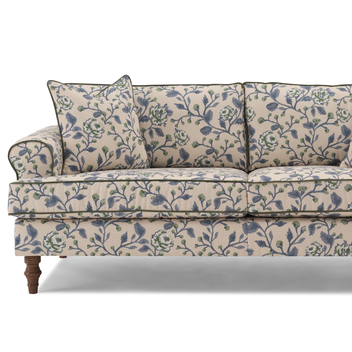 This is everyday comfort that still feels thoughtfully styled. A refined contrast cording traces each edge, highlighting the craftsmanship and lending a crisp, tailored definition that frames the sofa's graceful proportions.  The turned wood legs give the Faulkner sofa its signature silhouette, a subtle nod to time-worn Southern antiques and heirloom pieces that have a story.