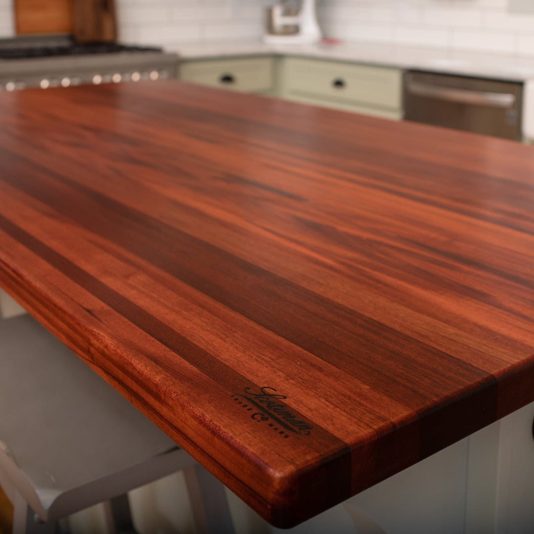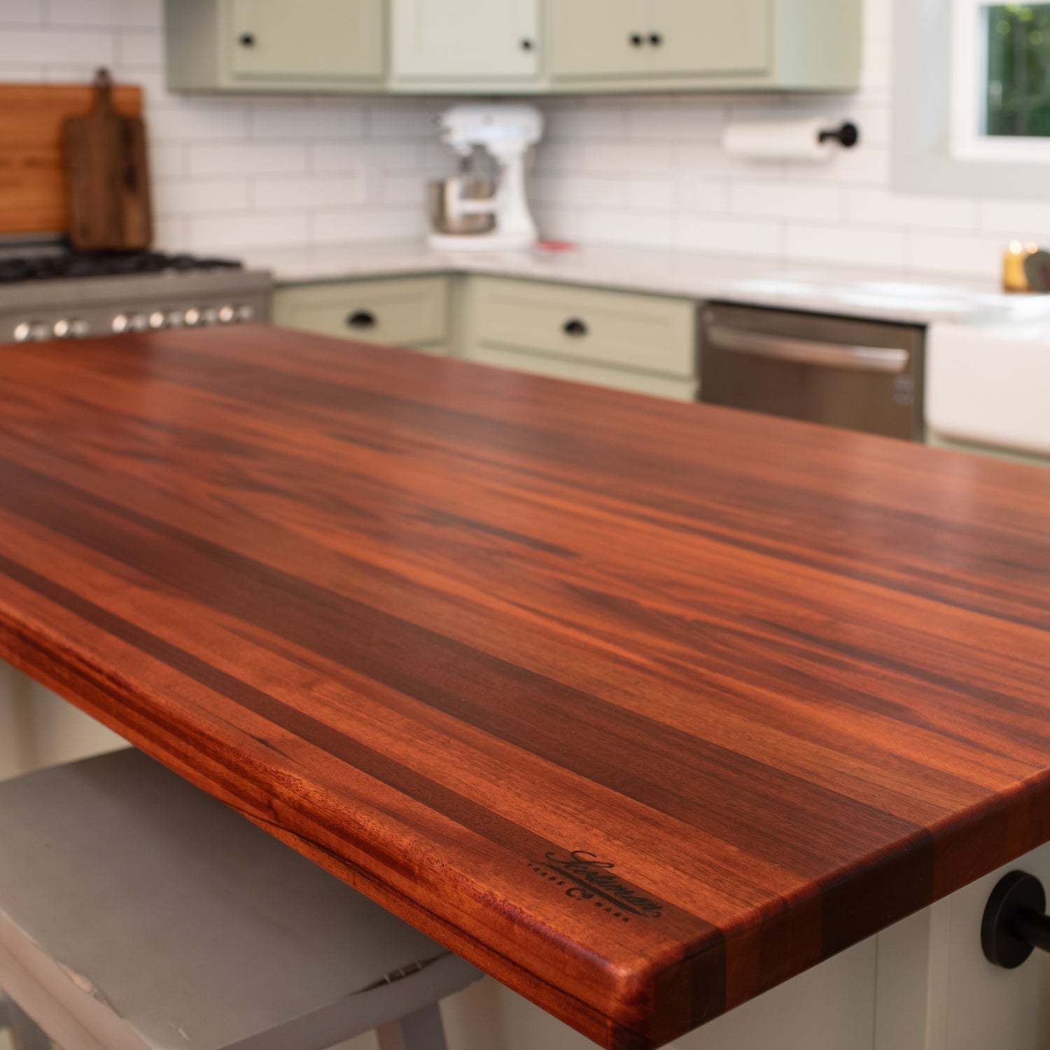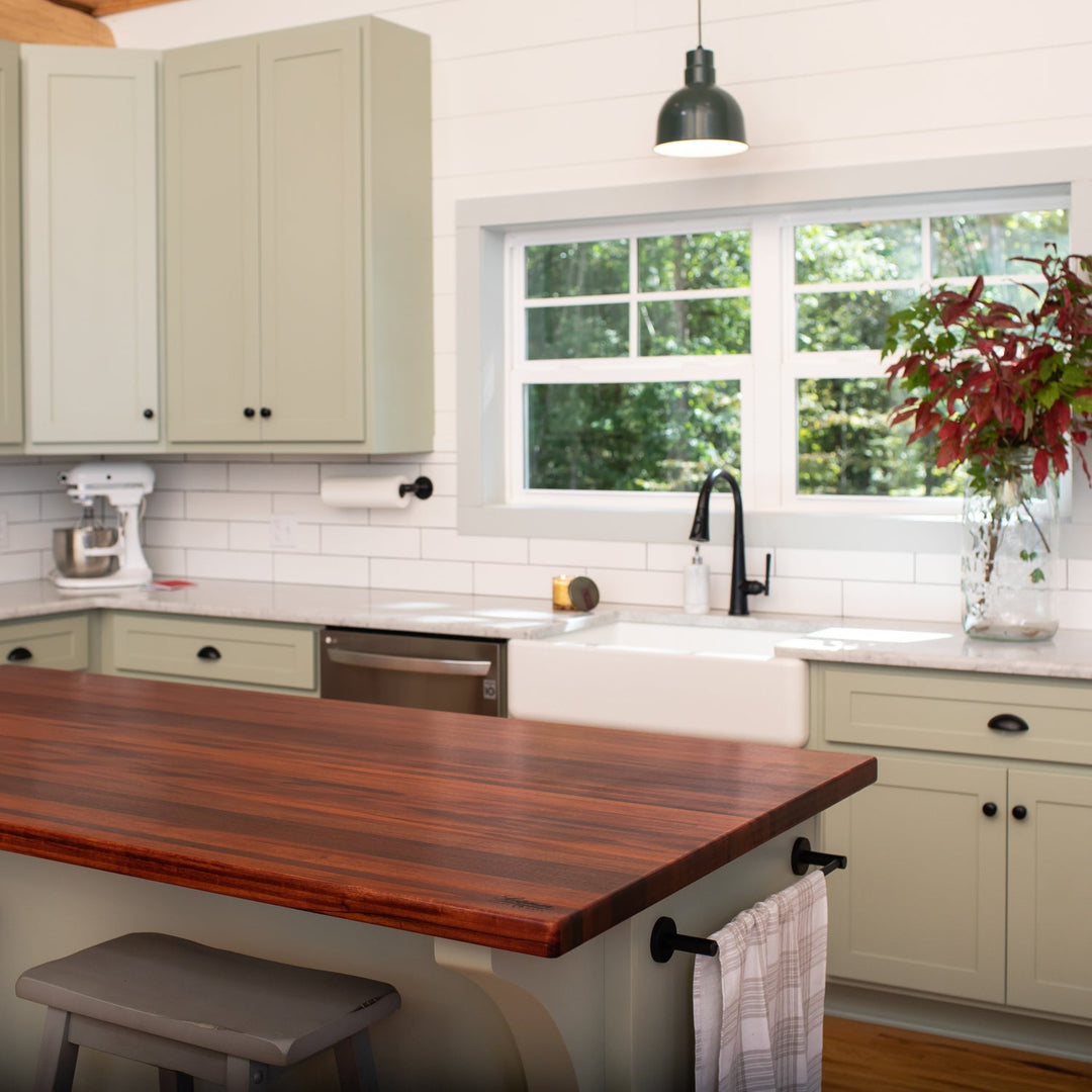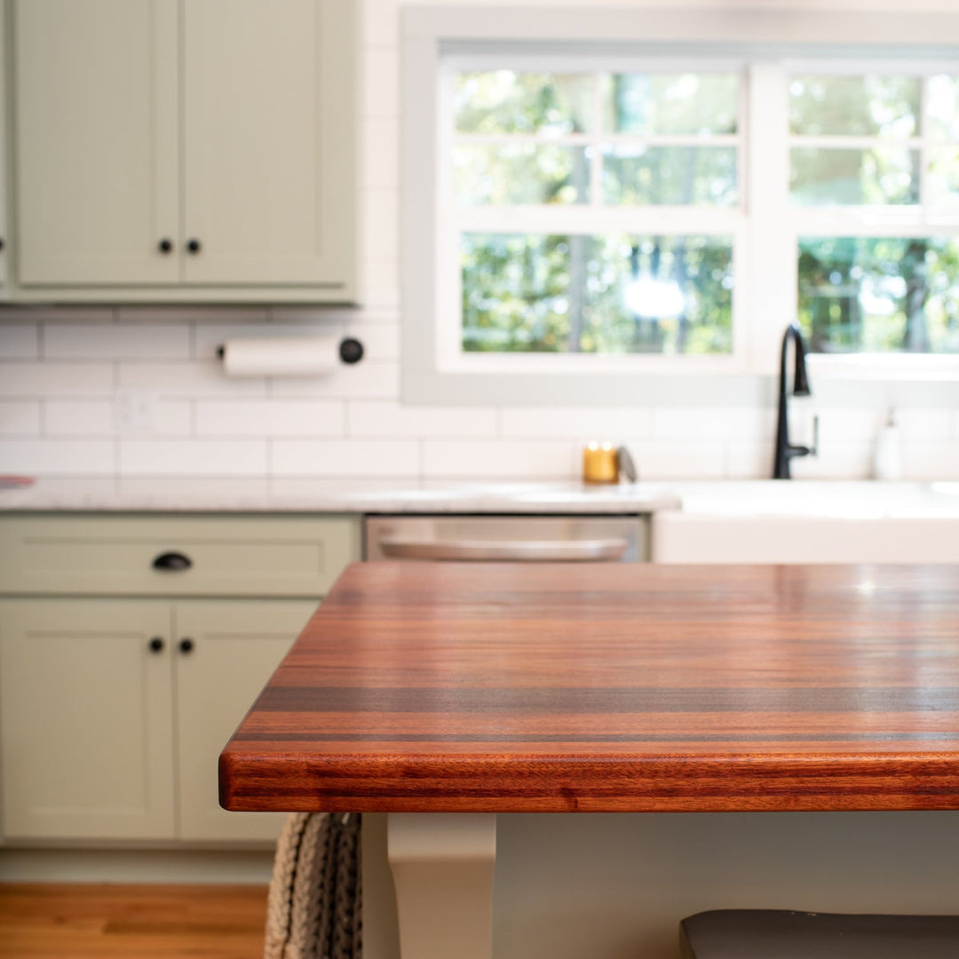 Pro tip: An oil finish means the wood grain is more exposed to nicks and scratches, but this allows for easy repair sanding and quick touch-ups. Great for heavy-use islands where the marks of use lend to the warmth of the home like historic butcher blocks.