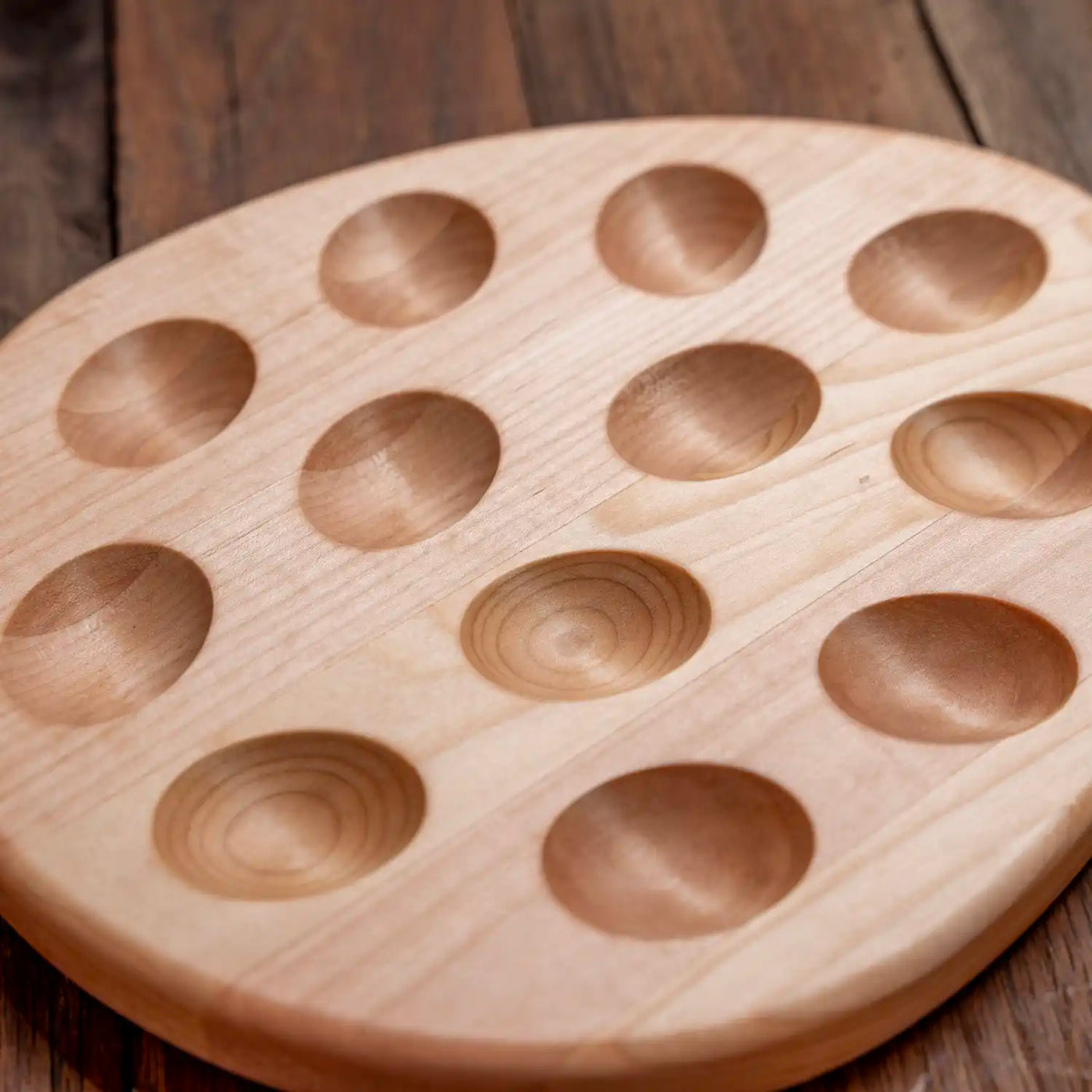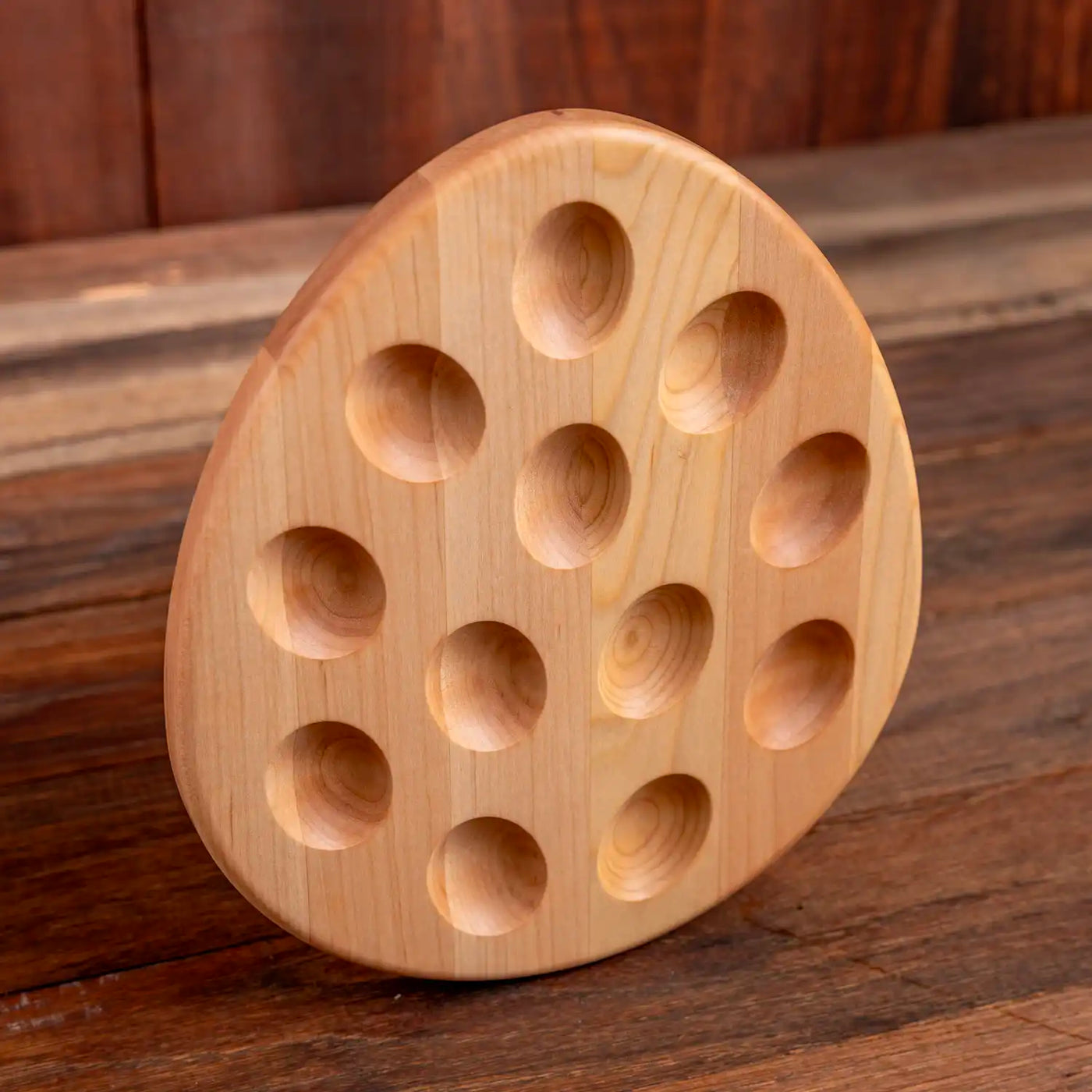 Impress your guests with this Maple Deviled Egg Tray, perfect for any party. Designed to hold 12 eggs, ideal for gourmet deviled egg tray and other appetizers. The tray can also be used as a serving plate by simply turning it upside down. Great multifunctional piece for any kitchen.
