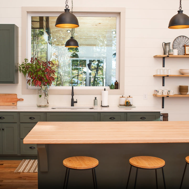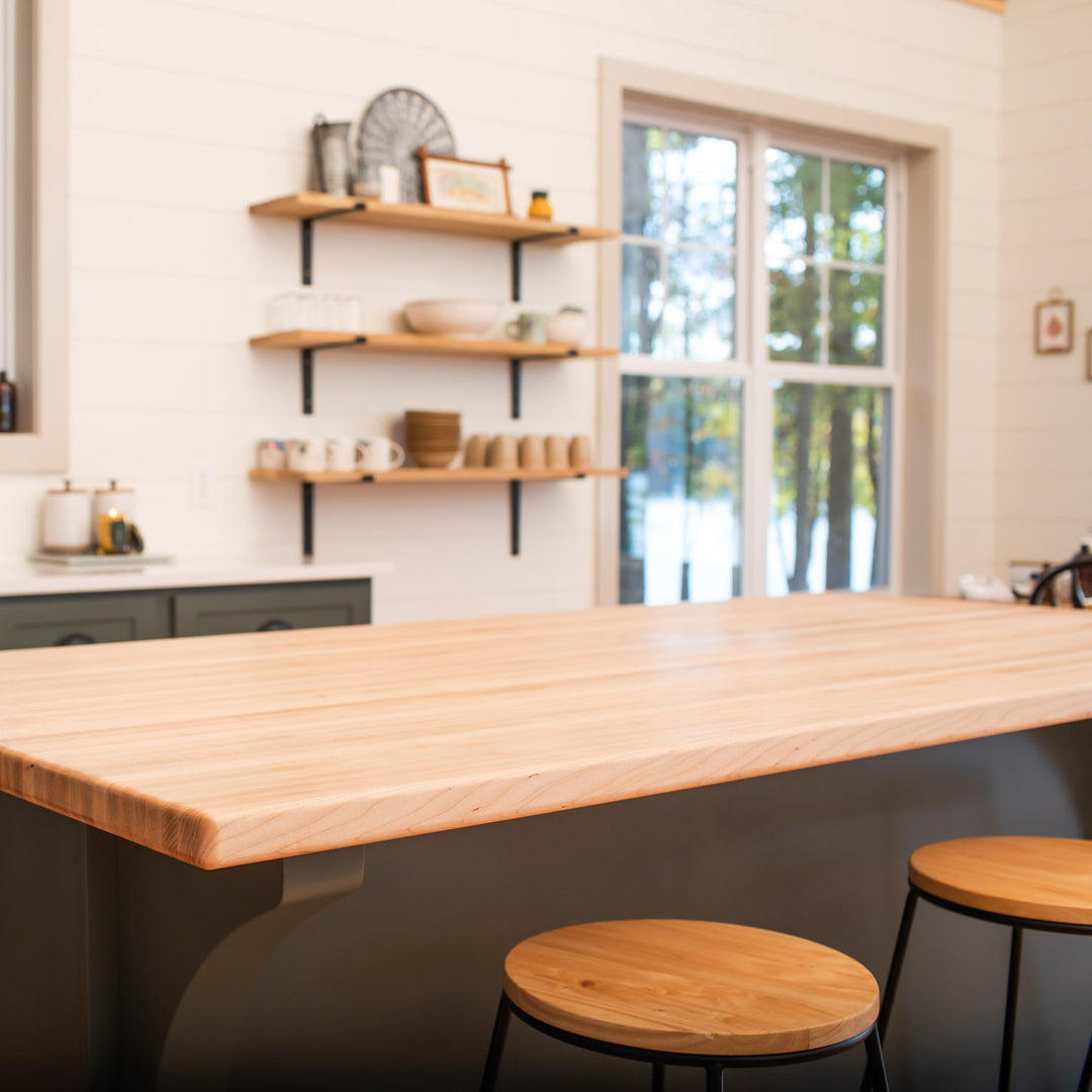 Pro tip: An oil finish means the wood grain is more exposed to nicks and scratches, but this allows for easy repair sanding and quick touch-ups. Great for heavy-use islands where the marks of use lend to the warmth of the home like historic butcher blocks.