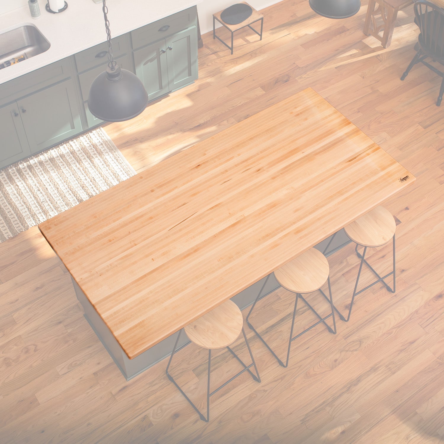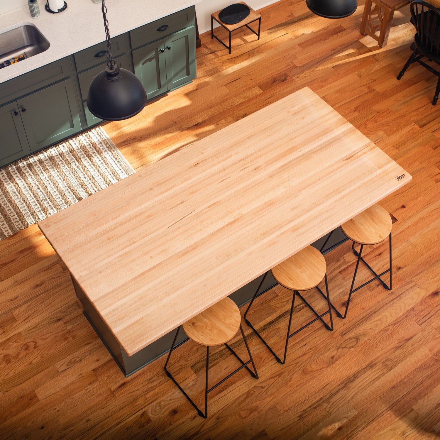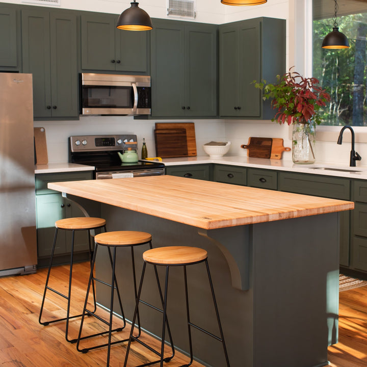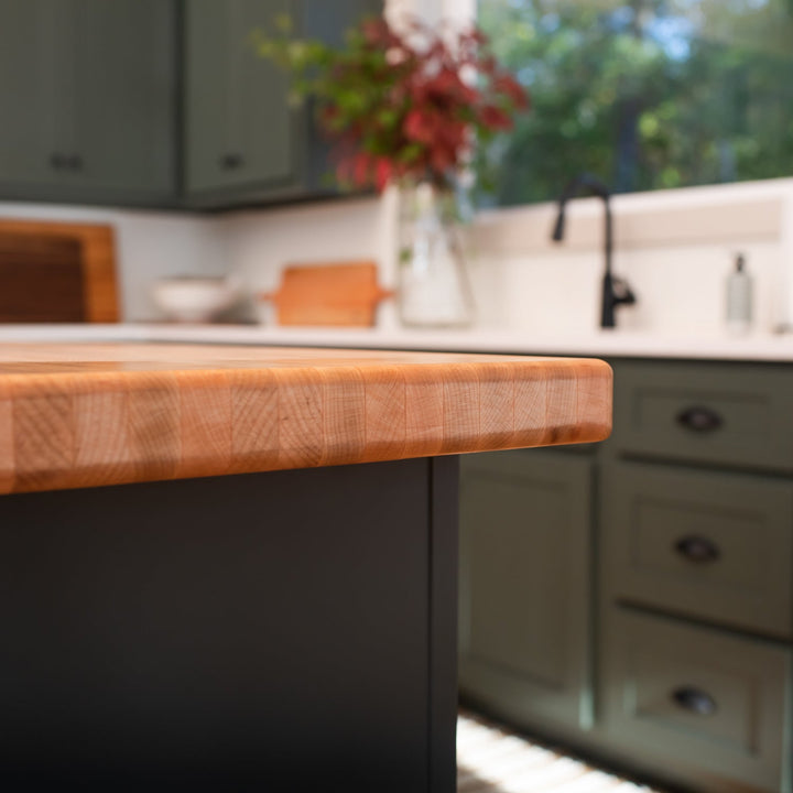 Pro tip: An oil finish means the wood grain is more exposed to nicks and scratches, but this allows for easy repair sanding and quick touch-ups. Great for heavy-use islands where the marks of use lend to the warmth of the home like historic butcher blocks.