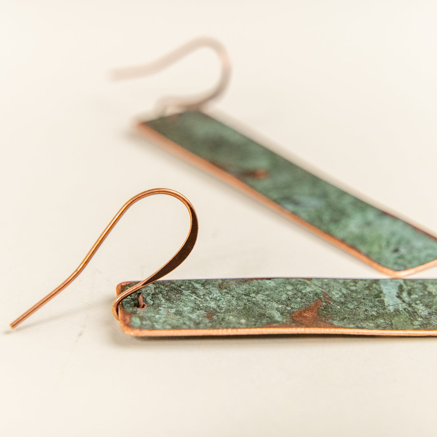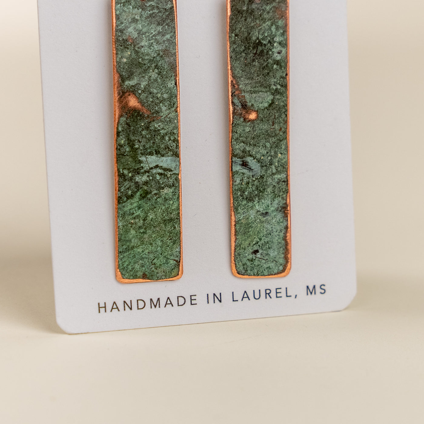 These limited edition earrings are upcycled from a naturally patinaed copper roof once located in Laurel’s Historic District. Handcrafted from start to finish ~ Take home a piece of America’s HometownEach design was inspired by a different architectural roof style.